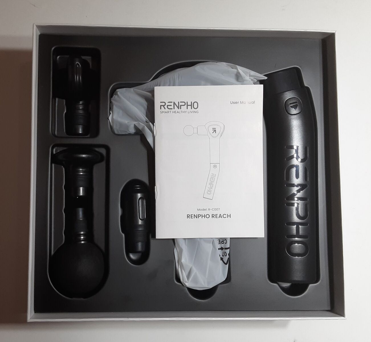 This New RENPHO Reach Handheld Percussion Impact Massage Gun Is Still Packed In The Original Box.