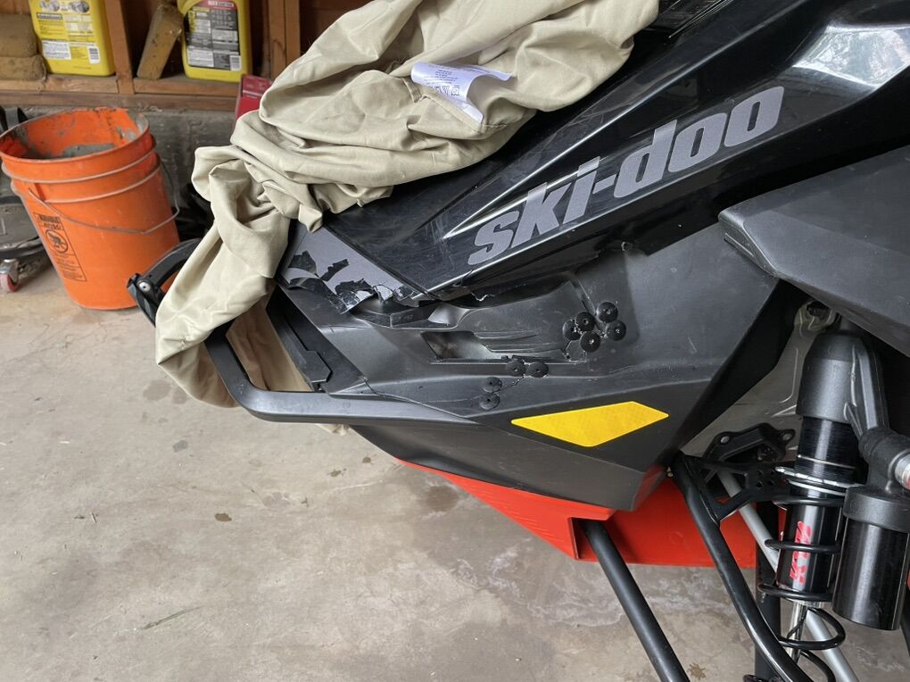 KYB Piggy Back Shocks ZRP Rear bumper ZRP Tmotion Lockout Cheetah Factory Racing boondocks handlebars Skidoo Heavy duty belly pan Ice Scratchers Spare belt and tools See pictures for small damage to hood. No SHOT on it