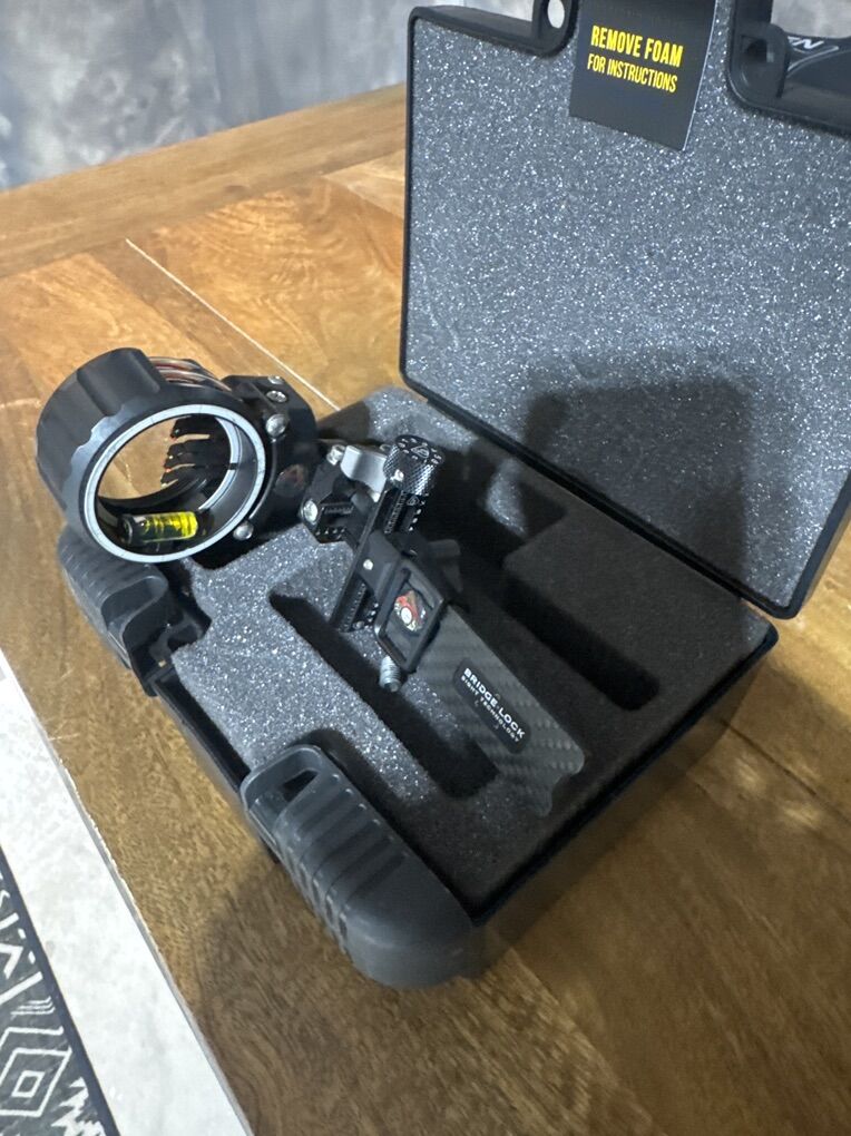 This is a right handed Mathews Bridge-Lock fixed 5 pin sight. The Mathews Bridge-Lock 5-Pin Bow Sight is the perfect choice for precise shooting. With micro-adjustable windage and elevation as well as individual micro-adjustable pins, this sighting system is designed to optimize your shots. Constructed with a precision cut, ultra-high modulus carbon bar and simple 1st, 2nd and 3rd axis adjustments, this bow sight was manufactured in partnership with Axcel for enhanced accuracy and stability. Get the most out of your bow hunting experience with the Mathews Bridge-Lock 5-Pin Bow Sight. Like new condition never used in the field. Retails for $349.99.