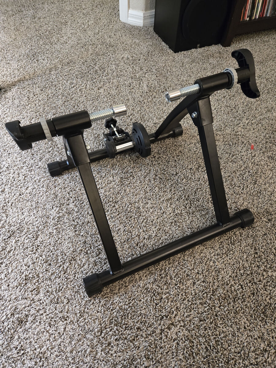 VenmoTransform your indoor training experience with the Schwinn Indoor Exercise Steel Bicycle Trainer with Magnetic Resistance Mechanism. Perfect for cyclists of all levels, this innovative trainer allows you to maintain your fitness routine regardless of the weather. Featuring a smooth and quiet magnetic aversion, you can enjoy a realistic cycling experience with this trainer right from the comfort of your home. Whether you're gearing up for race day or just trying to stay fit, the adjustable levels cater to your personal training needs. Constructed from heavy-duty steel, the Schwinn Bicycle Trainer is built to last, providing a durable and reliable training companion. Coming with a robust frame, this home workout accessory ensures stability and safety during intense workout sessions, allowing you to pedal confidently. The quick-release skewer simplifies installation, enabling you to set up your bike in minutes. Plus, the locking sleeve security system holds your bike firmly in place so that you can focus on your training without any worries. Ideal for those who value convenience and efficiency. this trainer is compatible with most road and mountain bikes. The compact design makes it easy to store when unused, while the foldable frame ensures trouble-free transport. Enjoy the freedom to train anytime, anywhere with the Schwinn Indoor Exercise Steel Bicycle Trainer. Upgrade your indoor cycling routine and stay on track with your fitness goals. The Schwinn Bicycle Trainer offers the perfect solution, whether aiming for endurance, speed, or simply maintaining a healthy lifestyle. Experience the benefits of a gym-quality workout in your home with this top-of-the-line indoor bicycle trainer. Dimensions (L x W x H): 24.5 x 9 x 21 inches Weight: 20 pounds