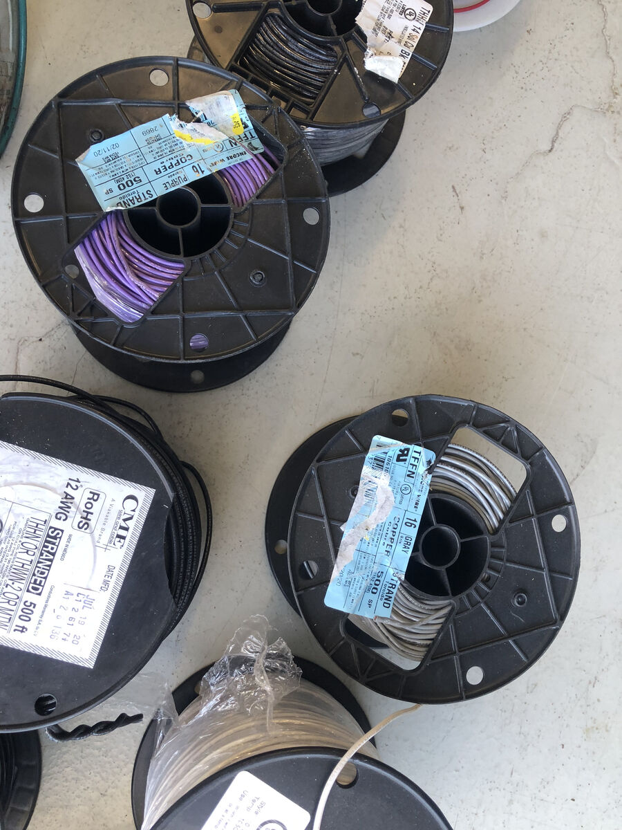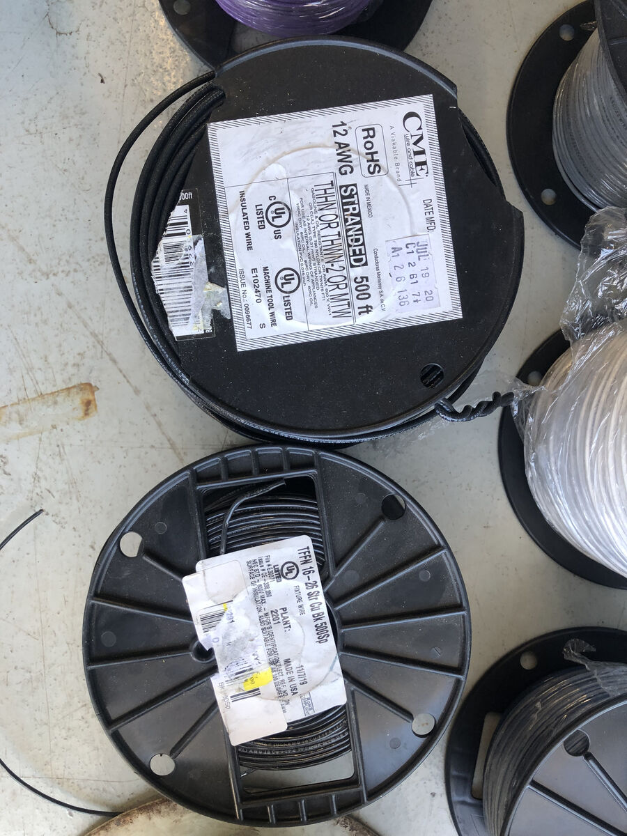 Venmo12 miscellaneous rolls of wire, sizes are #16,#12, Note pictures and labels $100 for the lot of 12