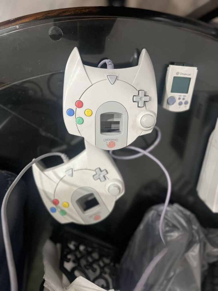 -Dreamcast. Turns on. Has two controllers, one memory stick. Has power cord no av cord. - $50