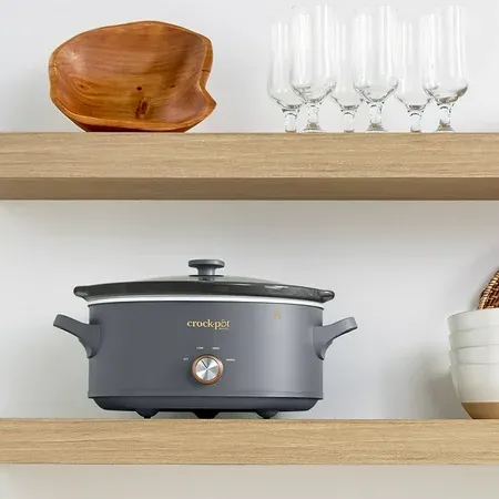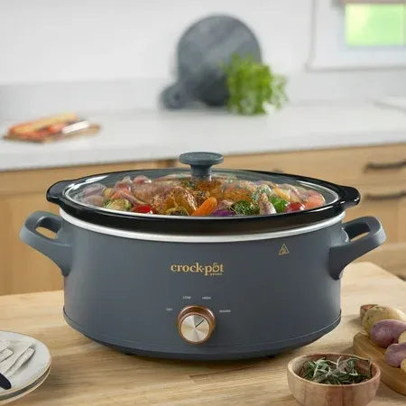 Crock-Pot Manual 7-Quart Slow Cooker, Mussel Grey 3 Manual Heat Settings: Choose from High, Low, and Warm, for cooking flexibility no matter what you're making 7-Quart Capacity: Feeds 9+ people and is perfectly sized for roasts and meals for entertaining a crowd Keep Warm Setting: The manual Warm setting allows you to keep your food at serving temperature when it's time to eat Oven-Safe Stoneware: Removable stoneware is oven-safe up to 400 degrees F Dishwasher-Safe: Stoneware and lid are both dishwasher-safe for easy cleaning Durable Finish: Fine sand texture in a modern Mussel Gray color