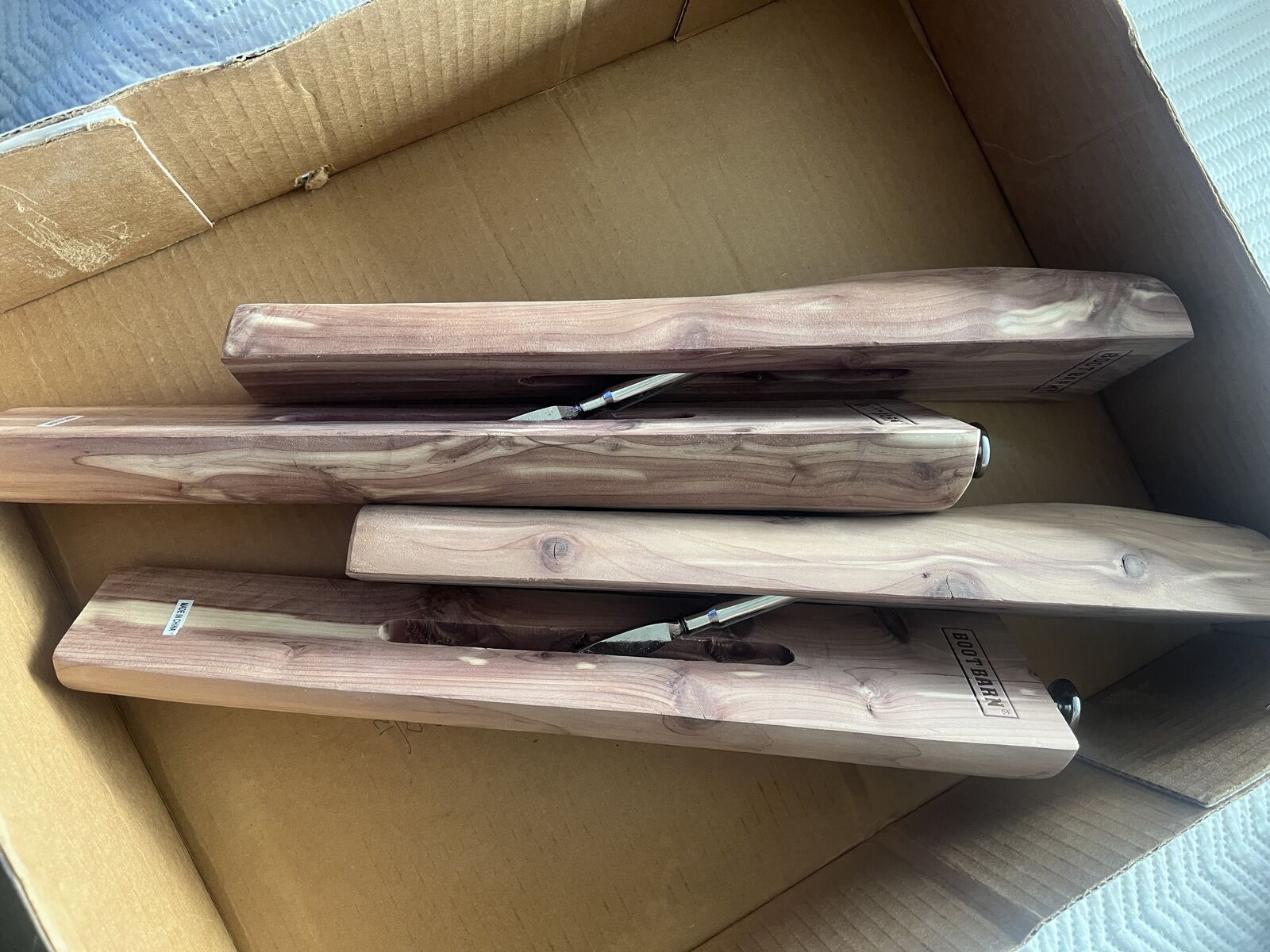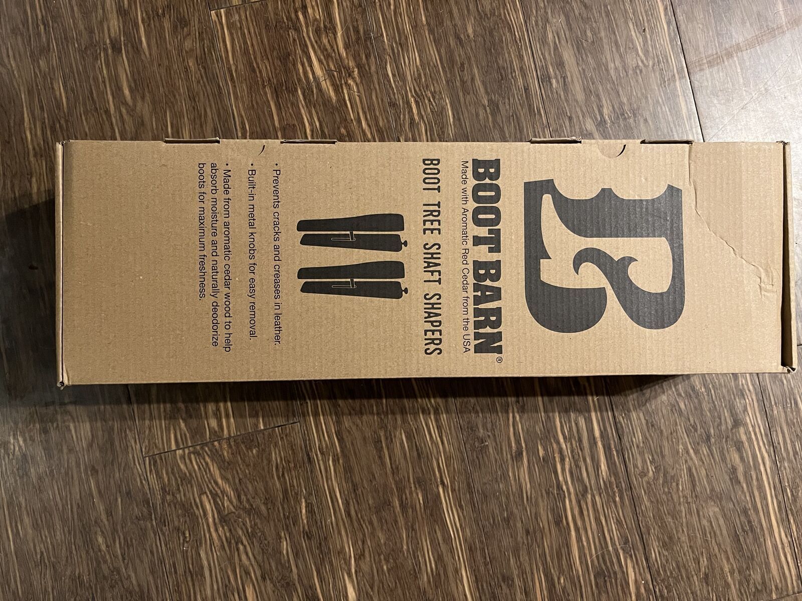 PayPalPair of new in box boot trees. Darker color than what is shown in the images. These are exactly as shown on the Boot Barn website https://www.bootbarn.com/boot-barn-cedar-boot-trees---shaft/2000381110.html?srsltid=AfmBOoqzRmy6rYQYKU4jGOXfqC76O2TuNV9tg9vHIdfprr8oTm32IZQ5
