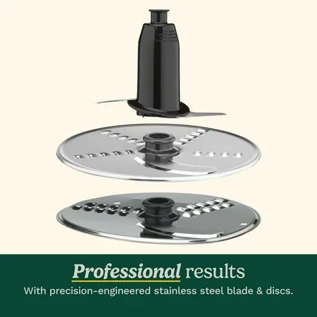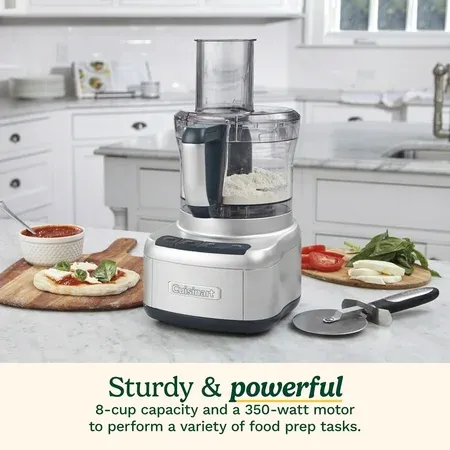 Handle any food prep task with this versatile food processor, featuring an 8-cup work bowl with measurement markings and a powerful 350-watt motor. Includes a stainless steel chopping, mixing and kneading blade, plus two reversible stainless steel discs for fine and medium shredding and slicing. Designed for convenience with rubberized controls, LED light indicators, and High, Low, Off and Pulse settings for customized operation. Integrated feed tube allows ingredients to be added during processing, while the wipe-clean touchpad makes cleanup easy. Dishwasher-safe removable parts and BPA-free construction ensure food safety and fast maintenance after each use. This compact food processor is a durable and dependable kitchen essential.