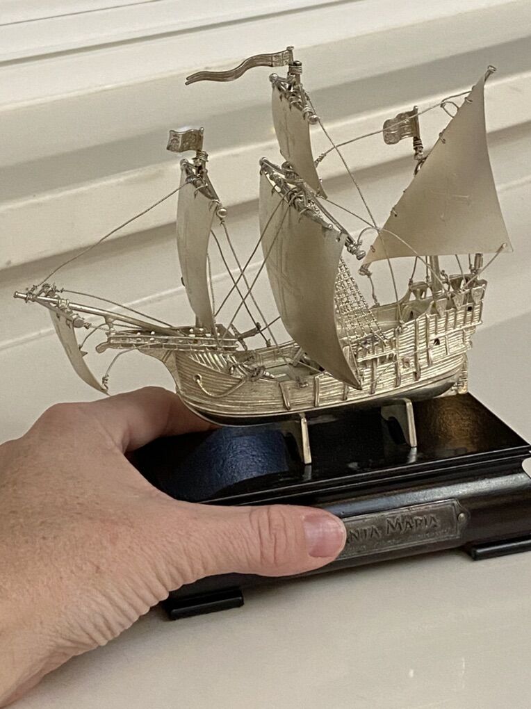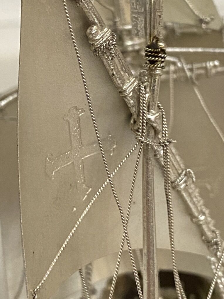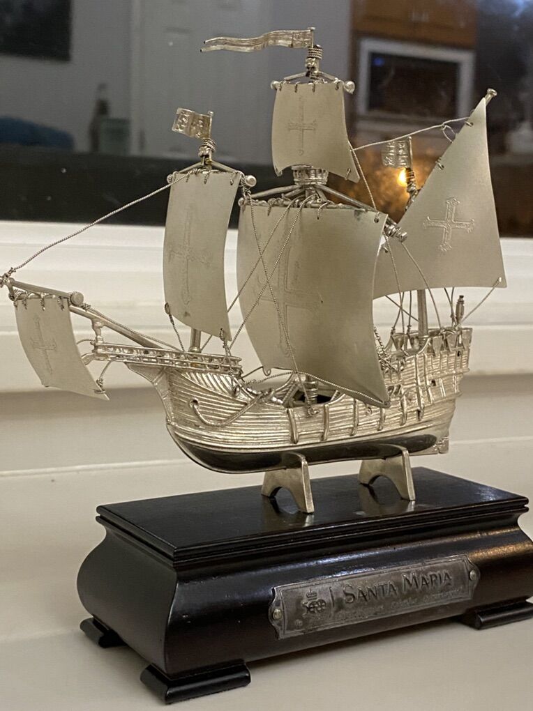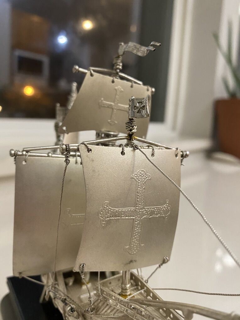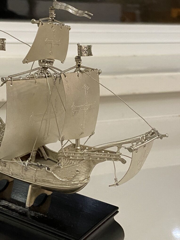 Rare Sterling Silver Santa Maria Ship Model – 310g of sterling silver .925 without the base. Official 1992 Columbus Commemorative Over 740$ in just melt value! I don’t have the pamphlet in the picture It just shows more information on it. Message me! 801-928-9049 Salem