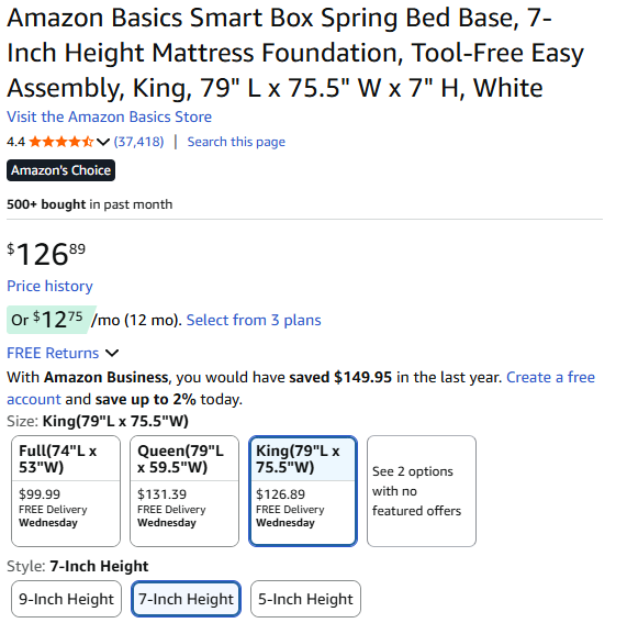 VenmoKing size steel bed frame. This is a great item that is so conveneint. It breaksone down and goes together very simply with no tools. Therefore, you don't have to fight to get it up stairs or around corners. We don't need it any more because we bought a bed that doesn't need a box. We used it for less than one year. Original prices was $126