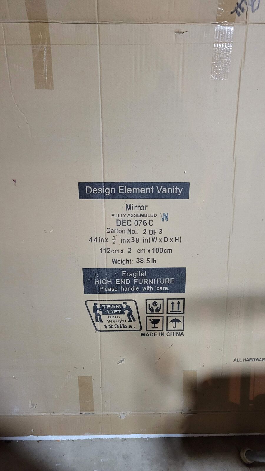 VenmoWhite vanity mirror 44" x 1/2" x 39". Vanity not included. Brnad new in box.