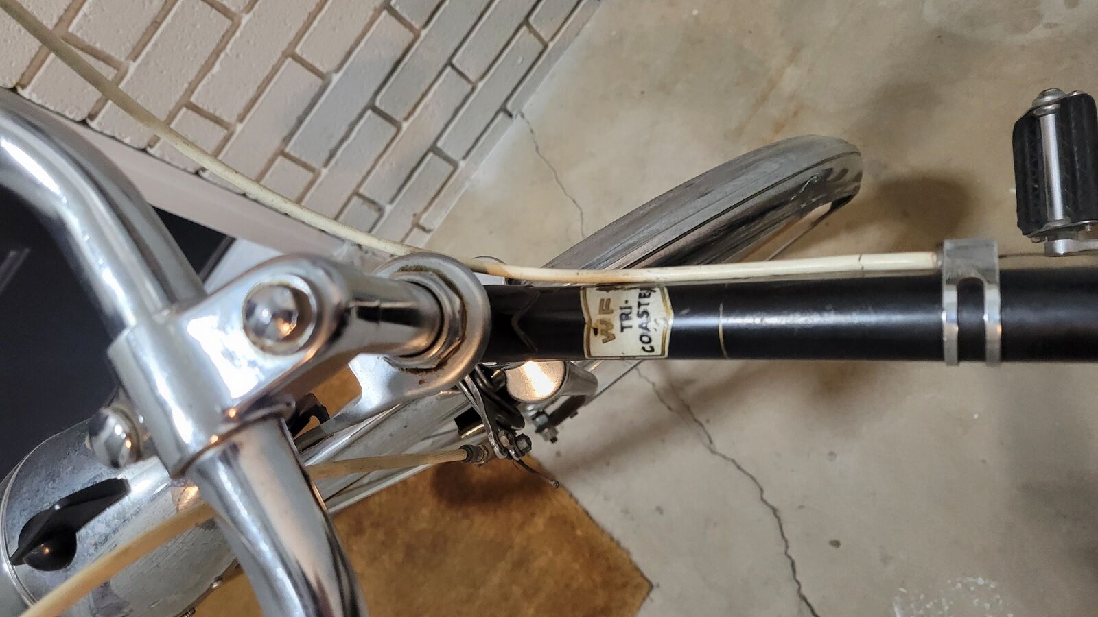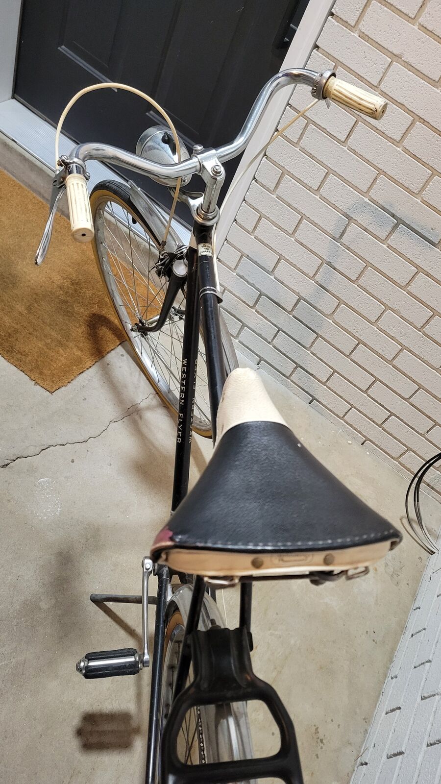 VenmoWestern Flier Tri Coaster vintage bike. 3 speed, rack, headlight, tan wall tires. Most likely 1950's bike. All original. Head turner bike. Works well, could use a new spring in gear hub.