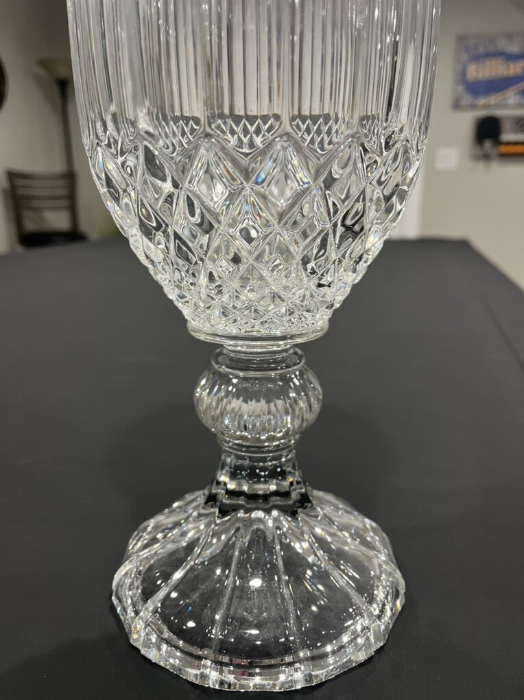 • Elegant cut crystal design • Sold as a **pair • Works beautifully with pillar candles (not included) • Great statement pieces or gift items