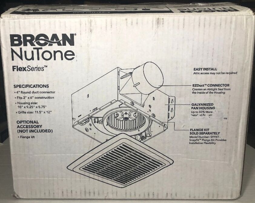 Enjoy easy exhaust bath fan installation with the Flex Series™ selectable 80/110 CFM Ceiling Exhaust Bath Fan, ENERGY STAR®. Room side installation eliminates the need for Attic Access. This ceiling-mounted ventilation fan features foldable mounting ears and an EzDuct™ connector for a fast and simple installation. Operating capabilities allows the user to easily adjust between 80/110 CFM while offering a quiet 1.0/1.5 sones for a smooth run.