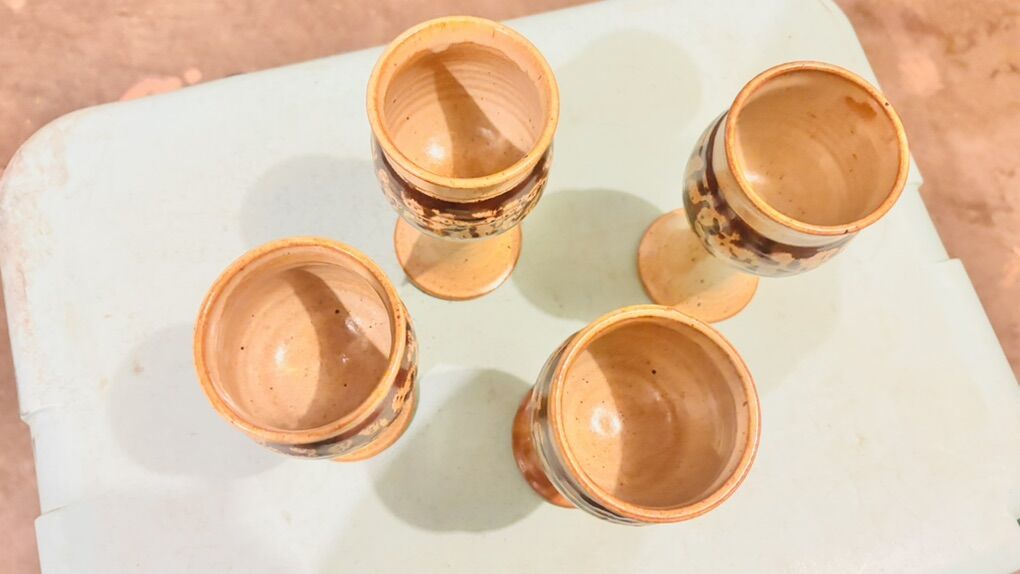 Set of 4 Stoneware Goblets - 6 Tall Beautiful handmade-style stoneware goblets with earthy, rustic glazing. Solid, heavy, and perfect for wine, cocktails, or just looking fancy while drinking water. Excellent condition. No chips or cracks. $35 for all Local pickup. St. George of Valleyview and Dixie.