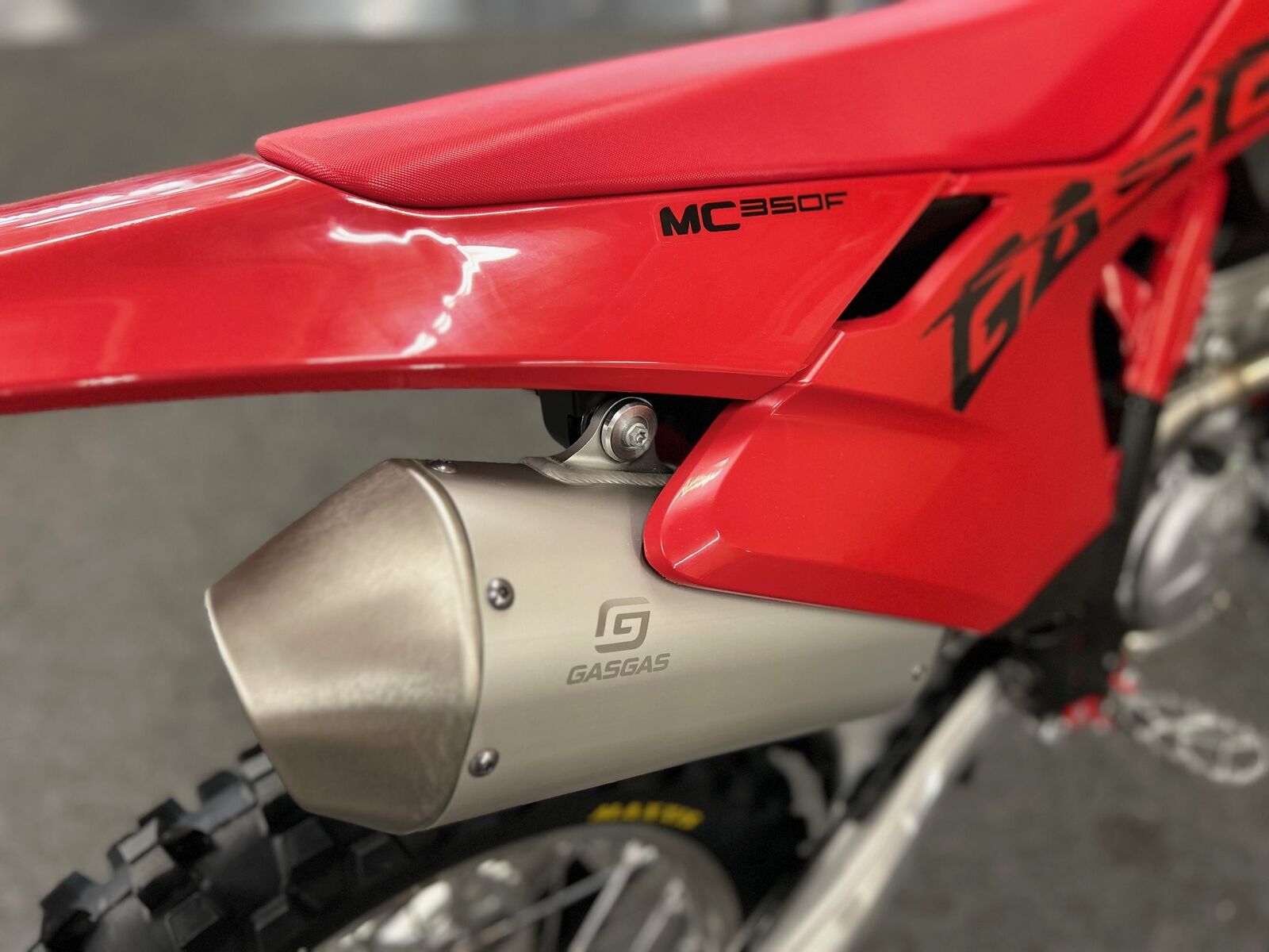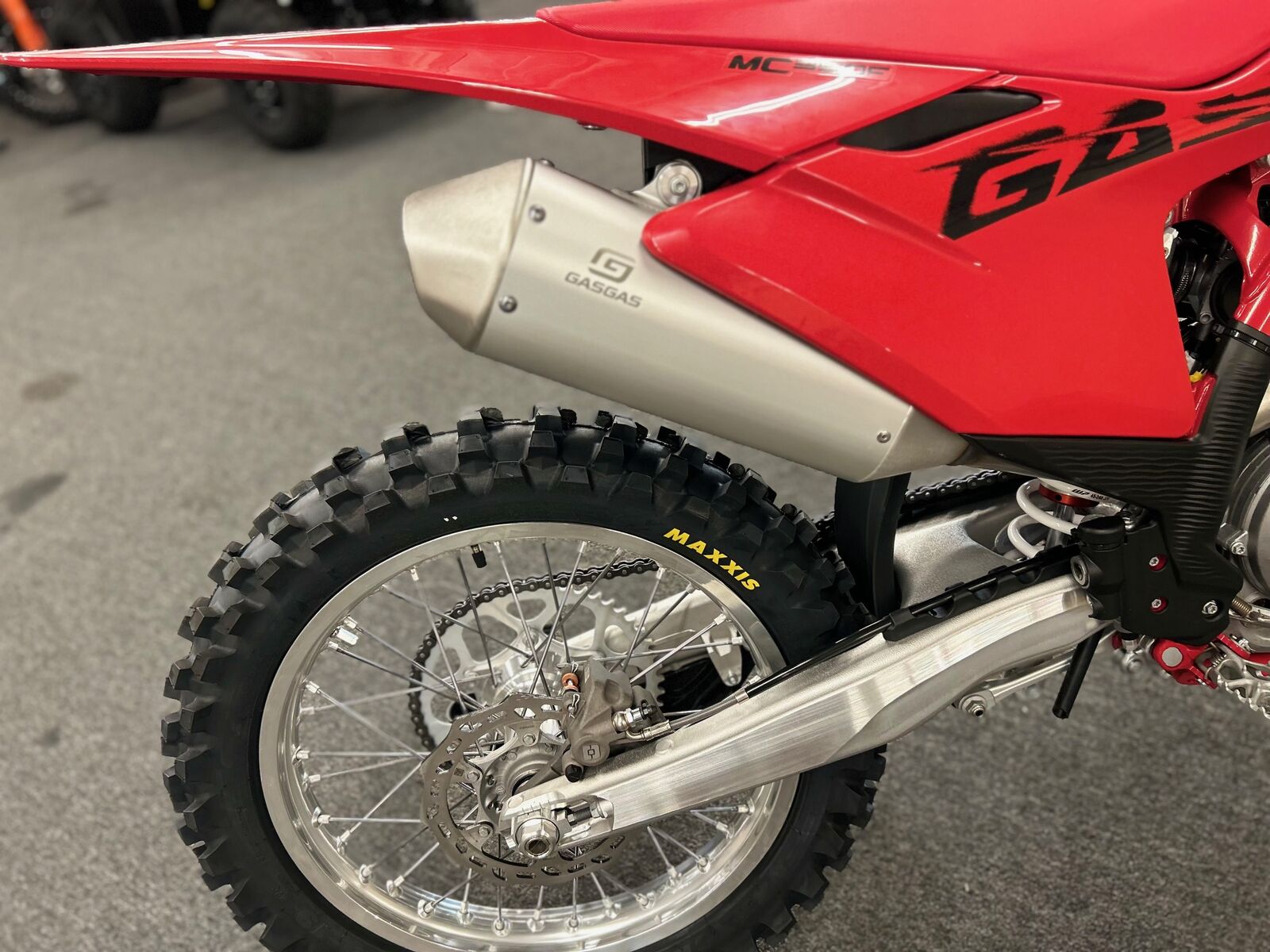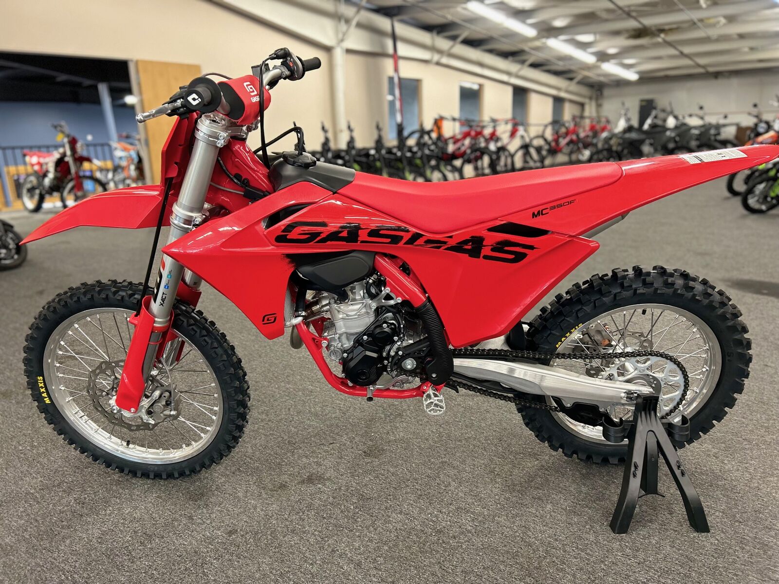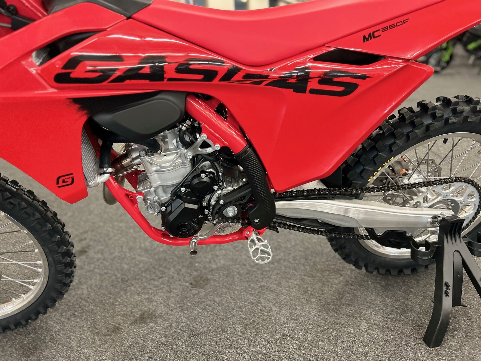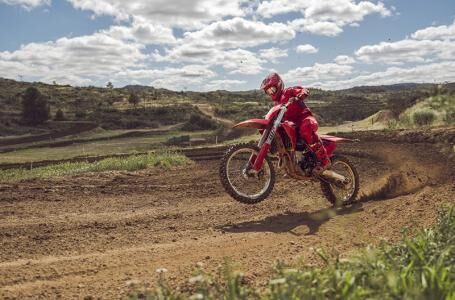 The illustrated vehicle may vary in selected details from the production models and some illustrations feature optional equipment available at additional cost. Manufacturer Suggested Retail Price (MSRP) does not include Pre-delivery Inspection (PDI), titles, licensing, registration fees, destination charges, added accessories and installation thereof. Engine Type: Single-Cylinder Displacement: 21.3 cu. in. (349.7 cc) Bore and Stroke: Bore: 3.5 in. (88 mm); Stroke: 2.3 in. (57.5 mm) Cooling: Liquid Compression Ratio: 14.6:1 Fuel System: Gas Front Suspension: Inverted Fork Front Brakes: Hydraulic Disc Front Tire: Maxxis® Maxx Cross MX-ST Rear Suspension: Twin Sided Swing Arm Rear Brakes: Hydraulic Disc Rear Tire: Maxxis® Maxx Cross MX-ST Dry Weight: 225.3 lb. (102.2 kg.) Fuel Capacity: 2.1 gal. (7.9 L) Wheelbase: 58.8 in. (1493 mm) Ground Clearance: 13.5 in. (343 mm) Seat Height: 37.6 in. (956 mm) Rake: 26.1 Transmission: Manual