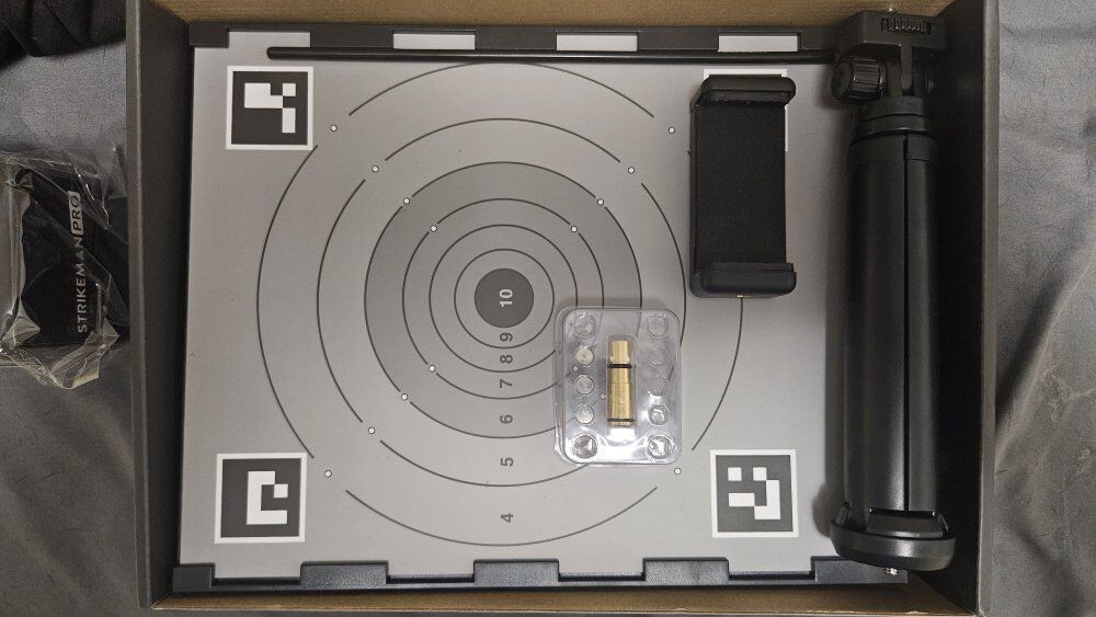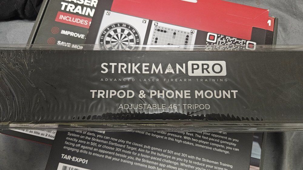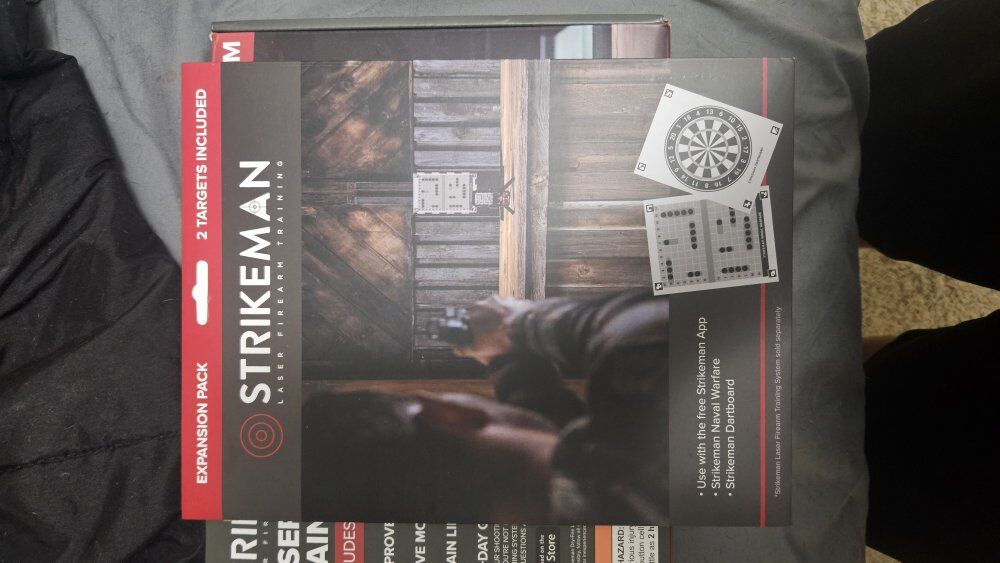 VenmoOriginal Strikeman laser training unit, comes with the short tripod phone mount and target mount as well as one target and a target mount with the laser cartridge and batteries. Original unit has been used a few times but is in excellent shape. I also have the target expansion pack with the Naval and Dartboard Targets as well as the taller 46 inch phone mount tripod (all of which is still brand new and factory sealed) so it can be used easier in more places. Super cool unit, fully indoor laser training unit for 9mm firearms. It uses a replica cartridge for 9mm with a laser and a rubber padded button to protect the firing pin while allowing dry fire training indoors without live ammo. Load the cartridge by hand without the magazine and use it with your phone. I love it, just need some extra cash.