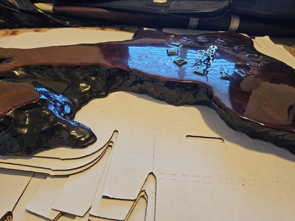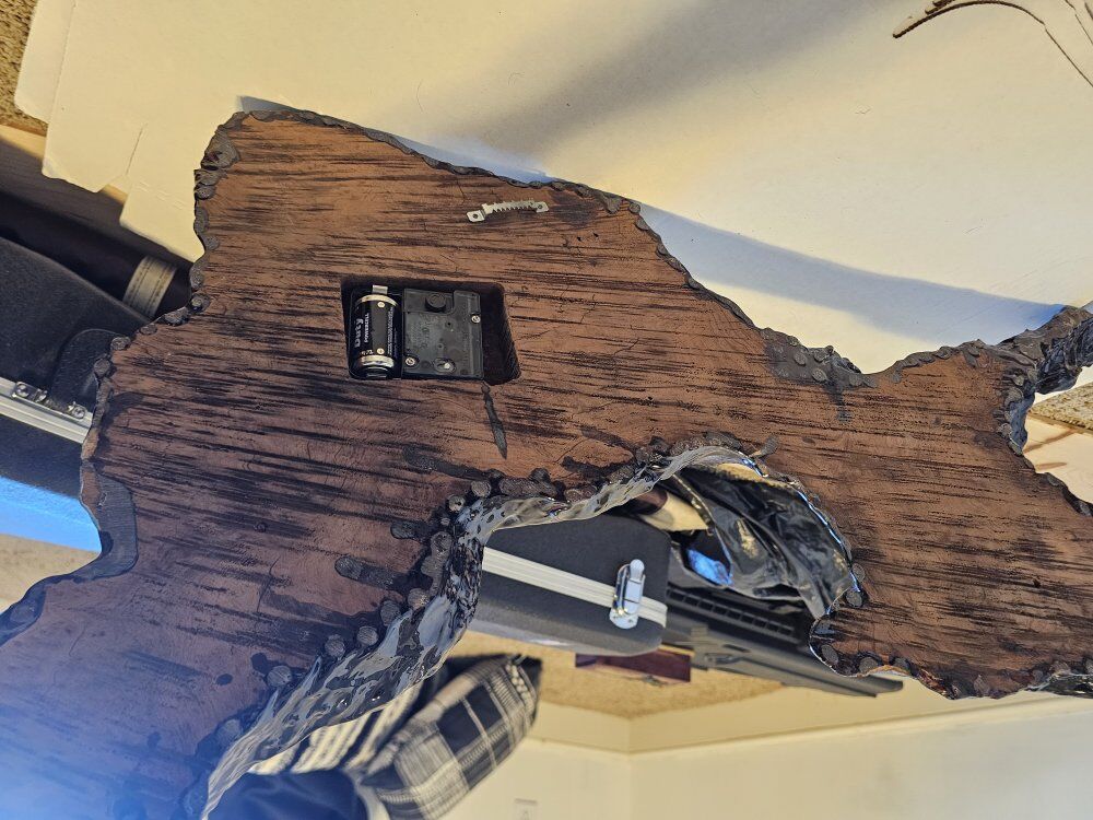 solid wooden clock with a resin coating. Hands could be raplaced but the do function