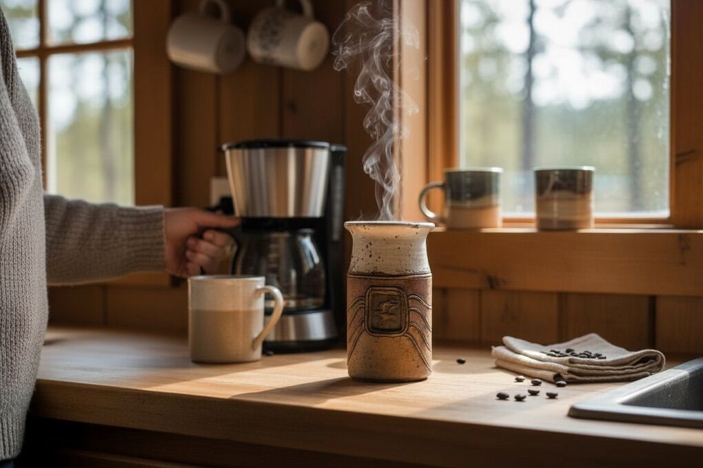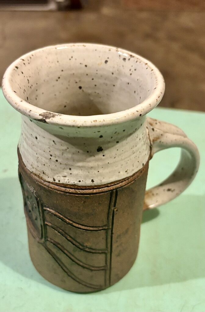 Can be used as a mug, small vase, or utensil holder. One-of-a-kind studio pottery.\