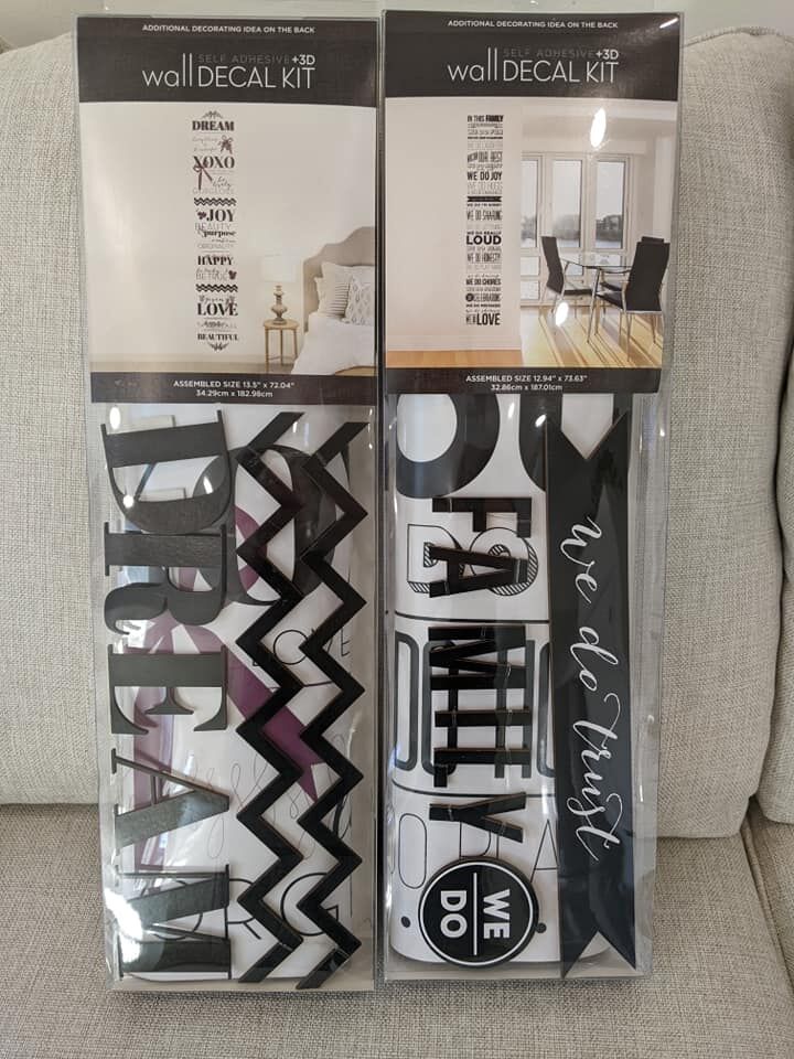 New 3D inspirational wall decal sets still sealed in box. There are 2 different ones. Easy to apply, reposition or remove without damaging your walls. Size 13.5" x 72.04" $10