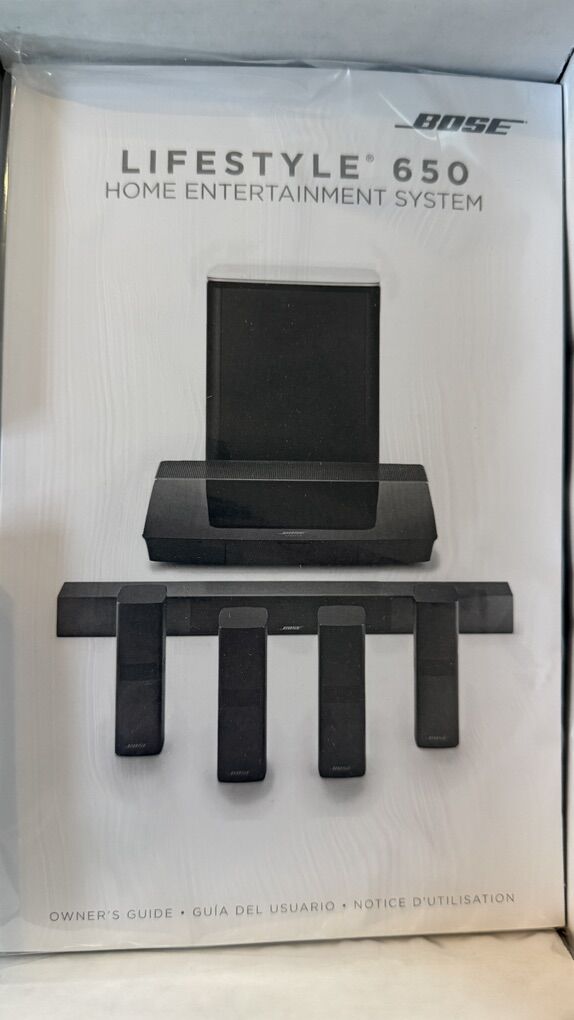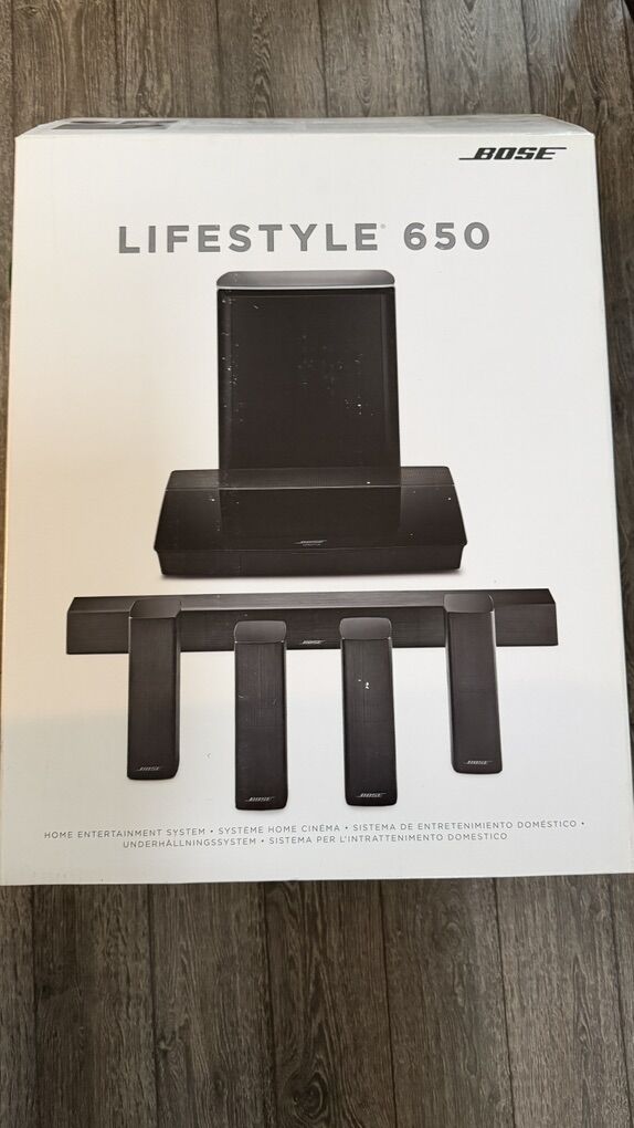 ZelleThis Bose Lifestyle 650 is still in its original box. It's a complete set including remote and ADAPTiQ headset. 5.1 surround with bass module and center speaker. Incredible system. Purchased new for over $4,000.