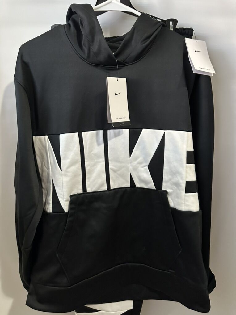 New Men’s sweat set Hoodie and sweatpants Both size M Black with large white logo Cash only No shipping Thank you
