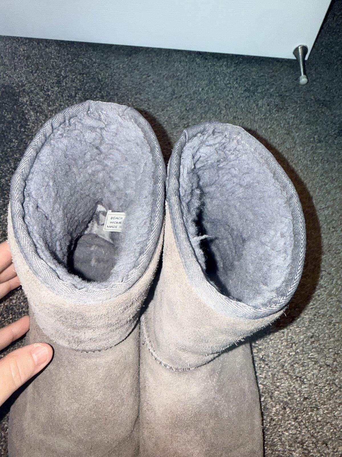 VenmoThese are a women size 8 grey suede boots. They are in used condition. They have the fuzzy fur on the inside. They are super comfortable to wear. Cash or Venmo