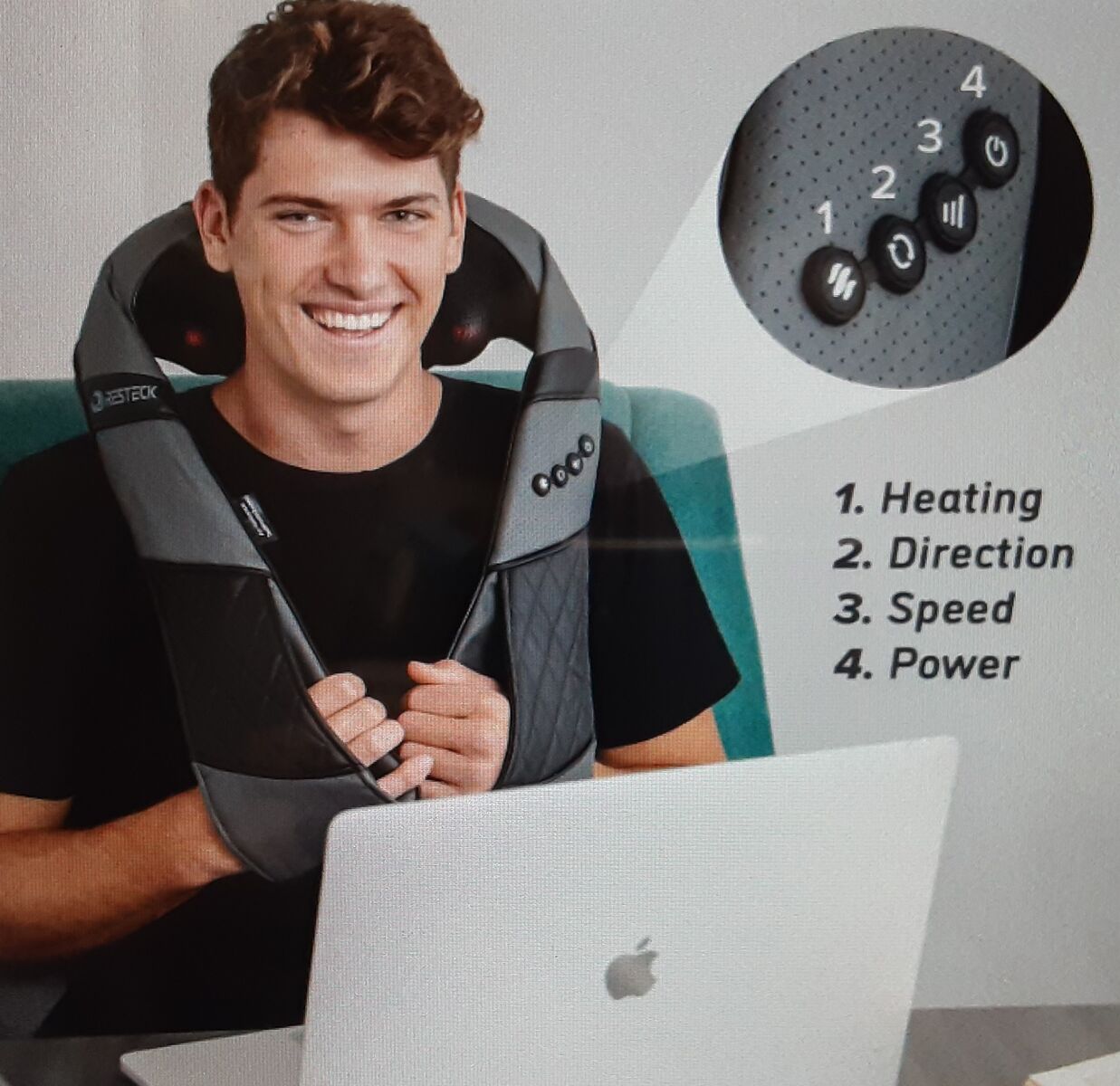 This Is A New RESTECK Shiatsu 20-Heated Heads Deep Kneading Massager For Muscles In Neck, Shoulders, Lower Back, Arms, Legs, Calves, Feet And More.