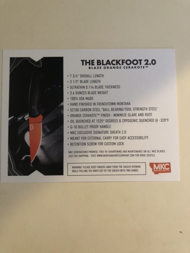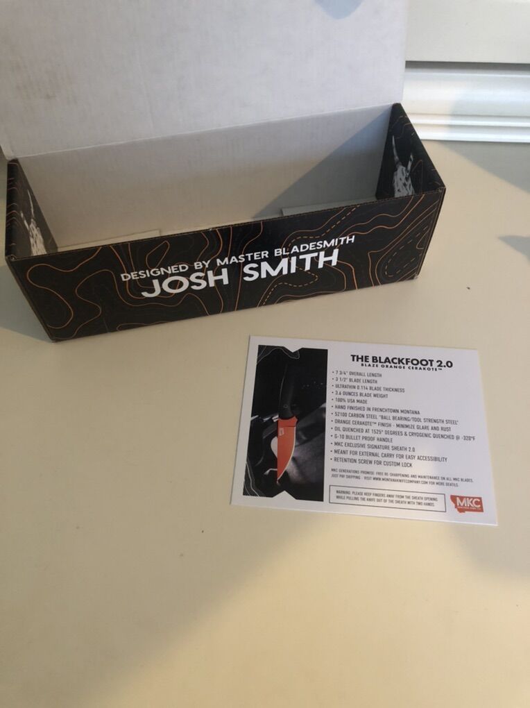 The orange cerakote is a little scuffed but other than that it’s in really good condition. MKC provides free sharpening on all their knives and will likely fix other damages for free minus the shipping cost.