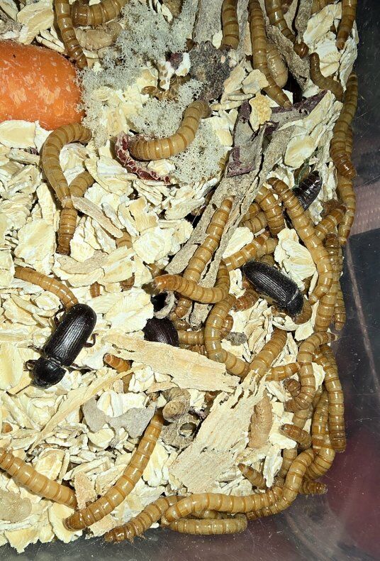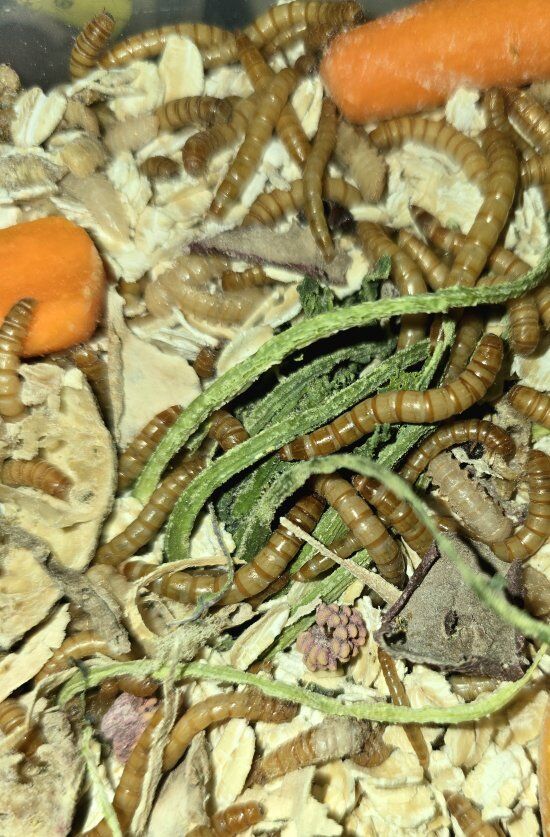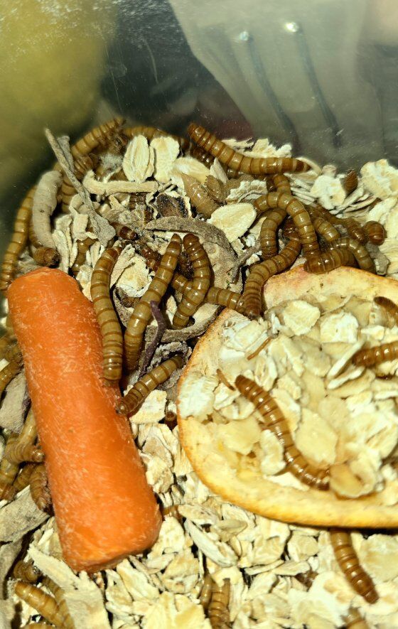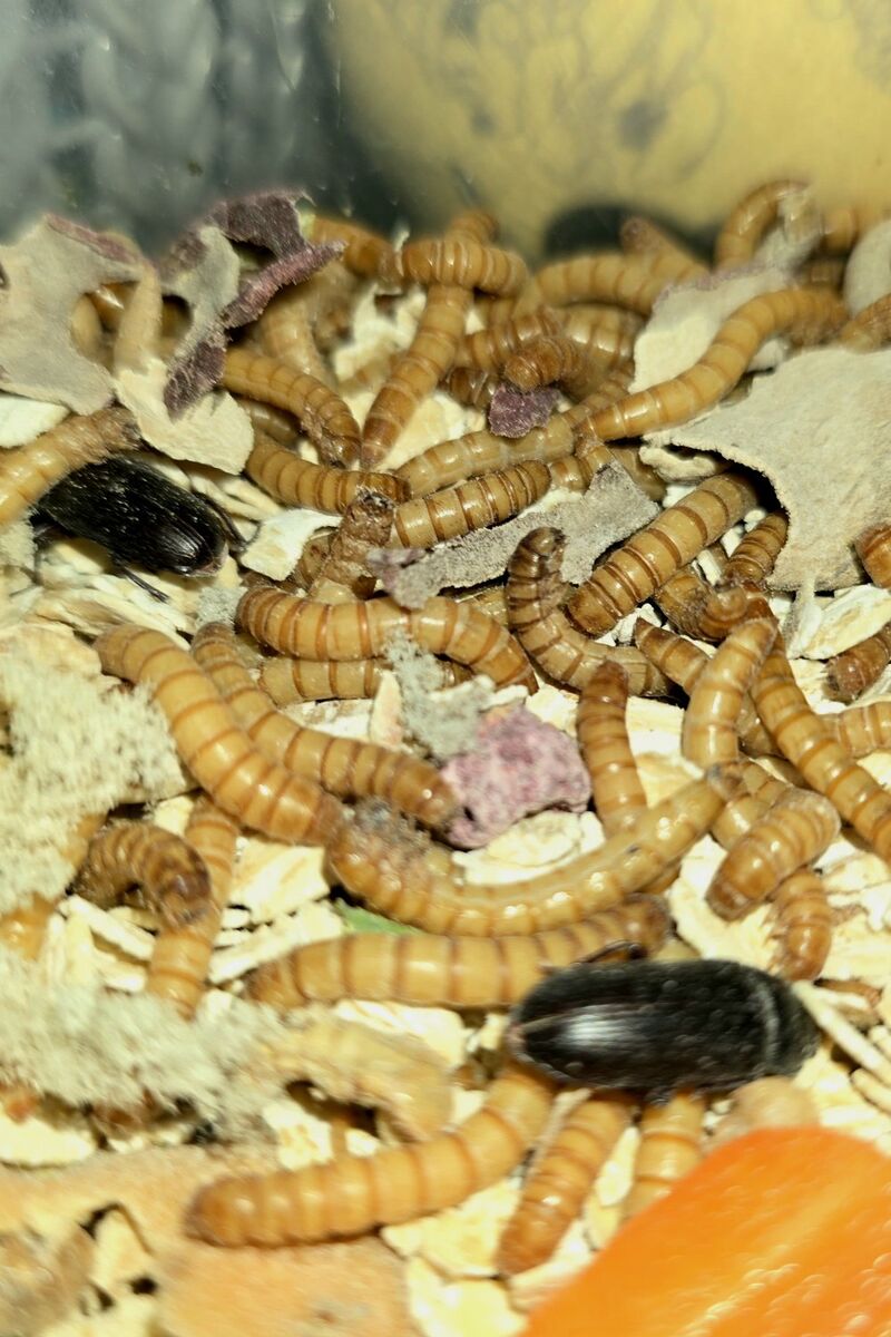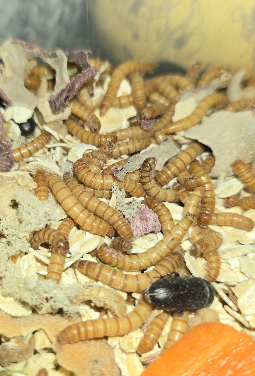 I breed and sell mealworms for pets. They are only fed safe food for lizards. They make a great alive snacks. 200 for 5 dollars.