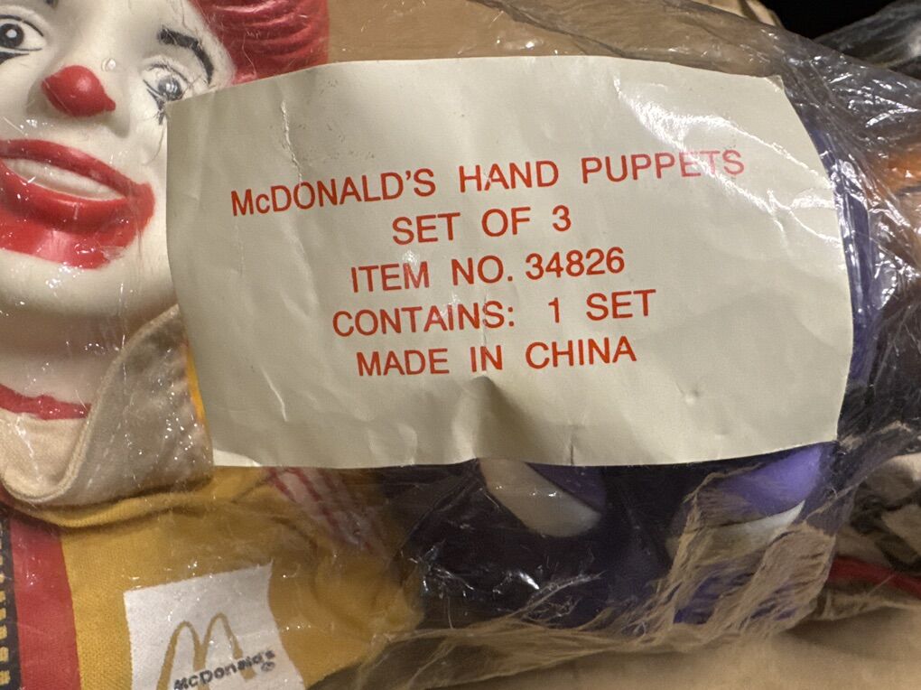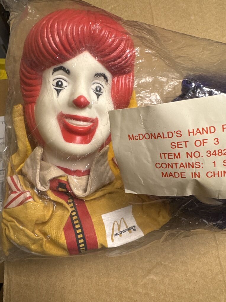 VenmoThis product is a rare sealed set of three McDonald's hand puppets from 1993, featuring Ronald McDonald, Grimace, and the Hamburglar.