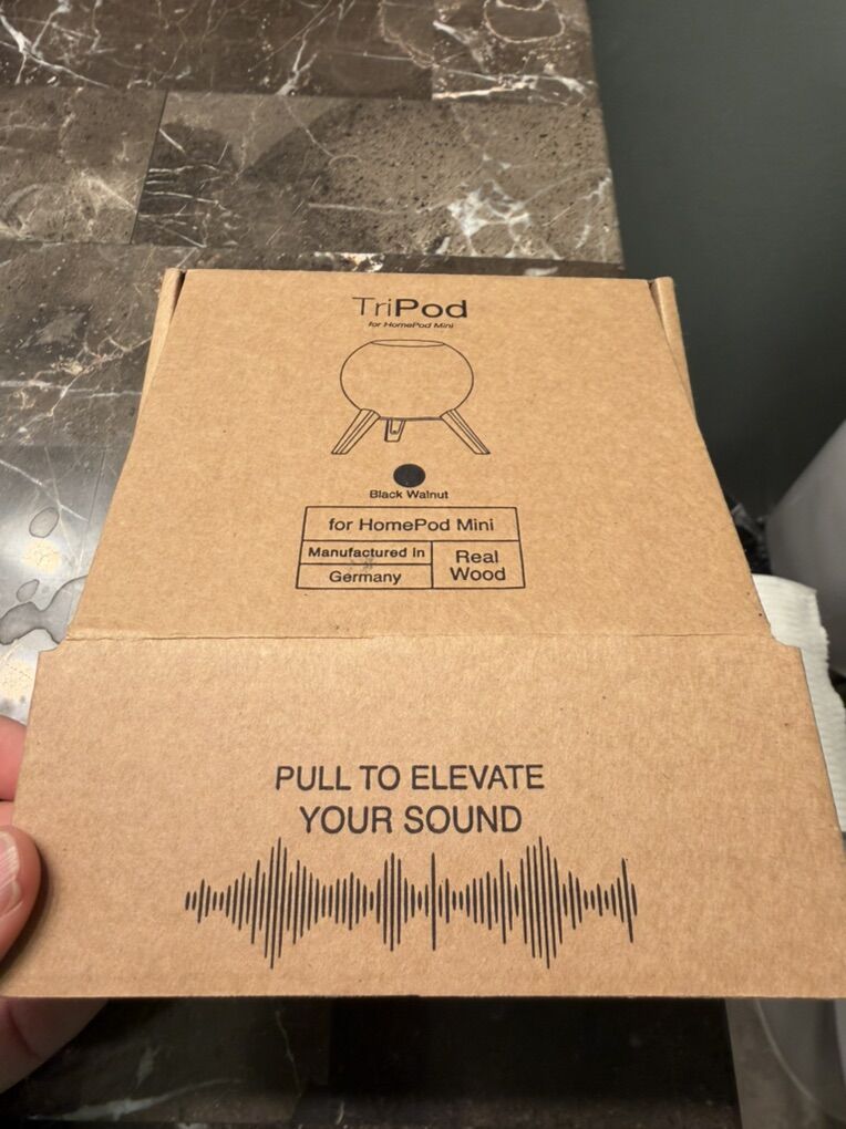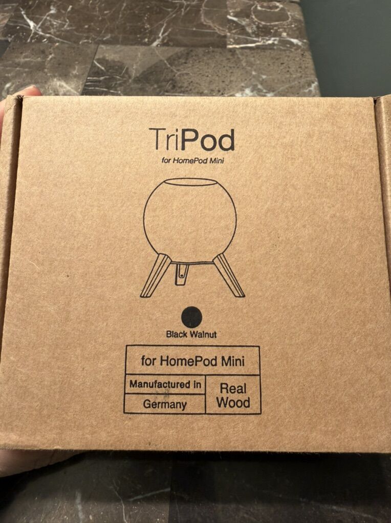 Elevate your HomePod Mini with this German well-made wooden tripod stand. Crafted from real wood with a black walnut finish and designed to improve sound projection by lifting the speaker off the surface. Clean, minimalist look that fits modern and mid-century interiors.