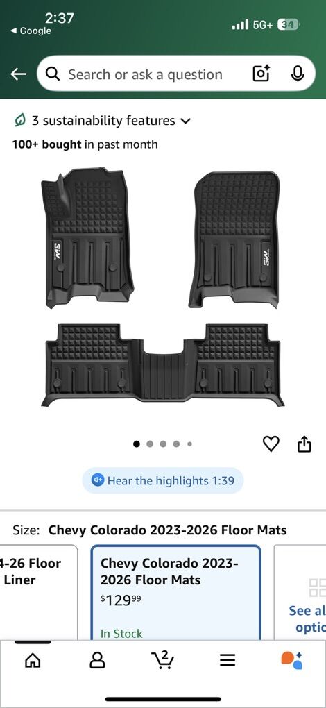 3W Floor Mats for Chevrolet Chevy Colorado/GMC Canyon Crew Cab 2023-2025 2026, All Weather TPE Custom Fit Floor Mats for Cars, 1st and 2nd Row Car Floor Mats, Black