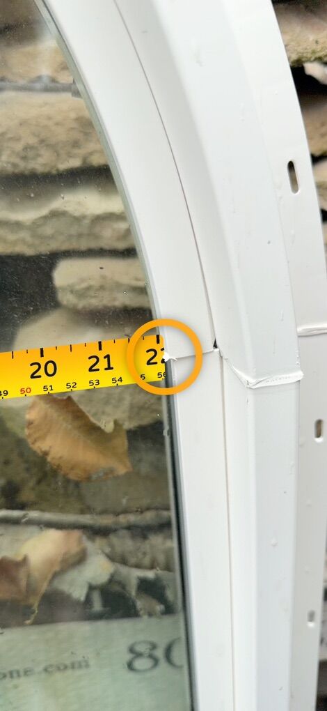 Arch window, glass with white aluminum frame. Buyer to verify size. New never installed, however has been stored outside.
