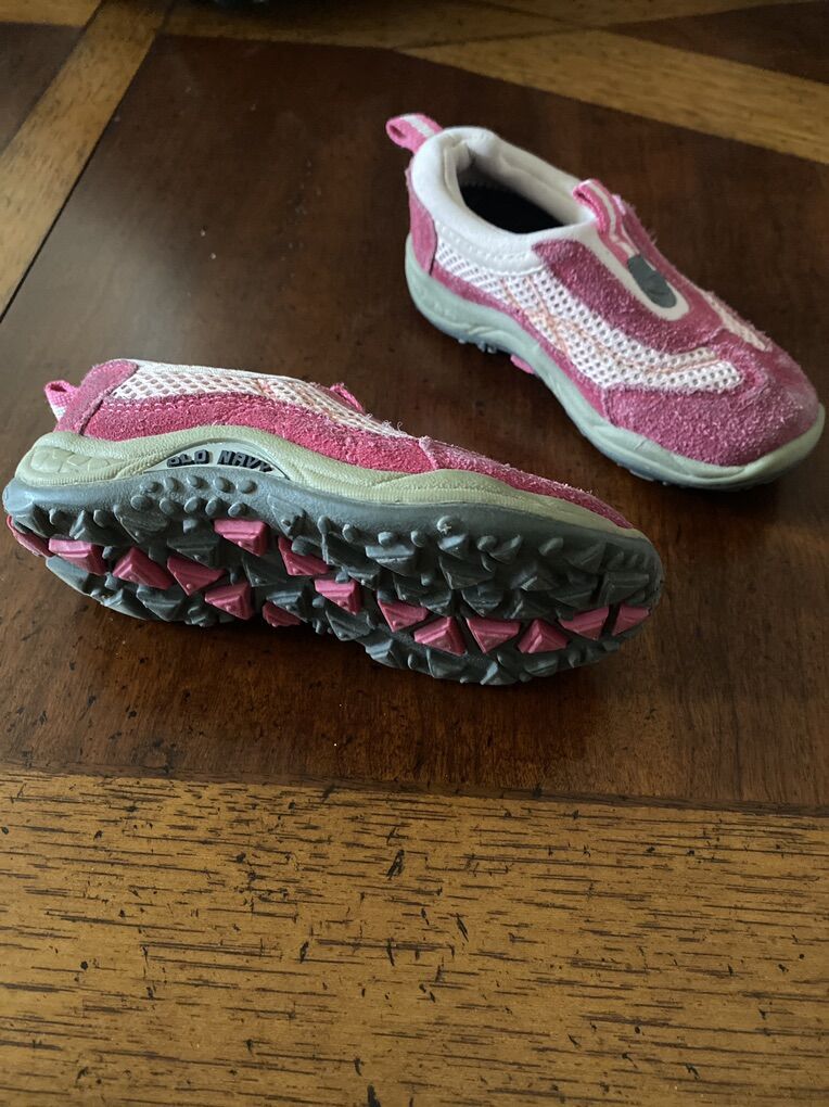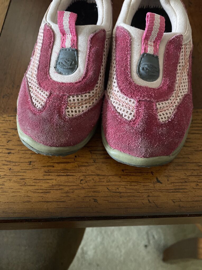 Super cute pink shoes. I can’t see a size on the shoes. Would probably fit between 3-5years old? Still in good condition. Price is firm.