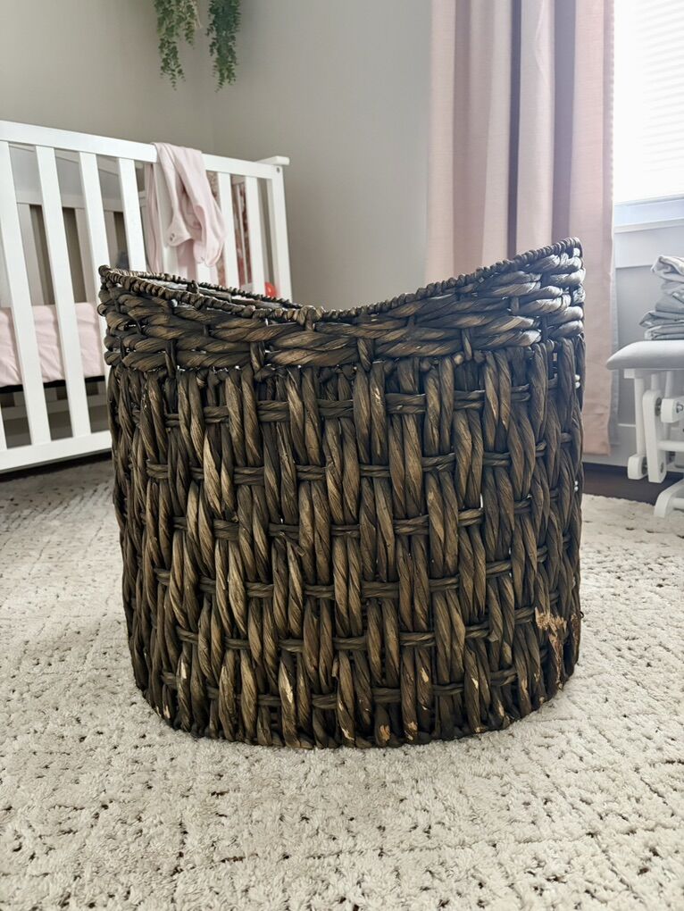 VenmoSelling this large, rustic wicker storage basket. It is extremely durable and has handles on the side. It is still in great condition. Large enough to store blankets in, if desired. The opening measures 23” x 20.5” and stands approximately 21” tall. Asking $25.