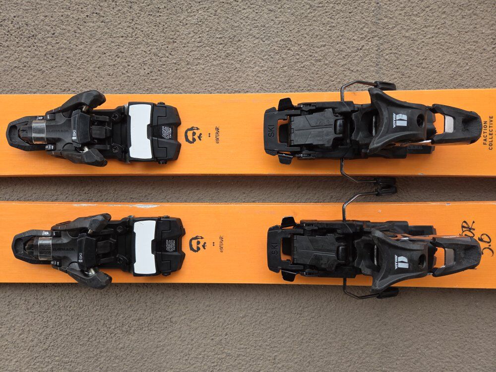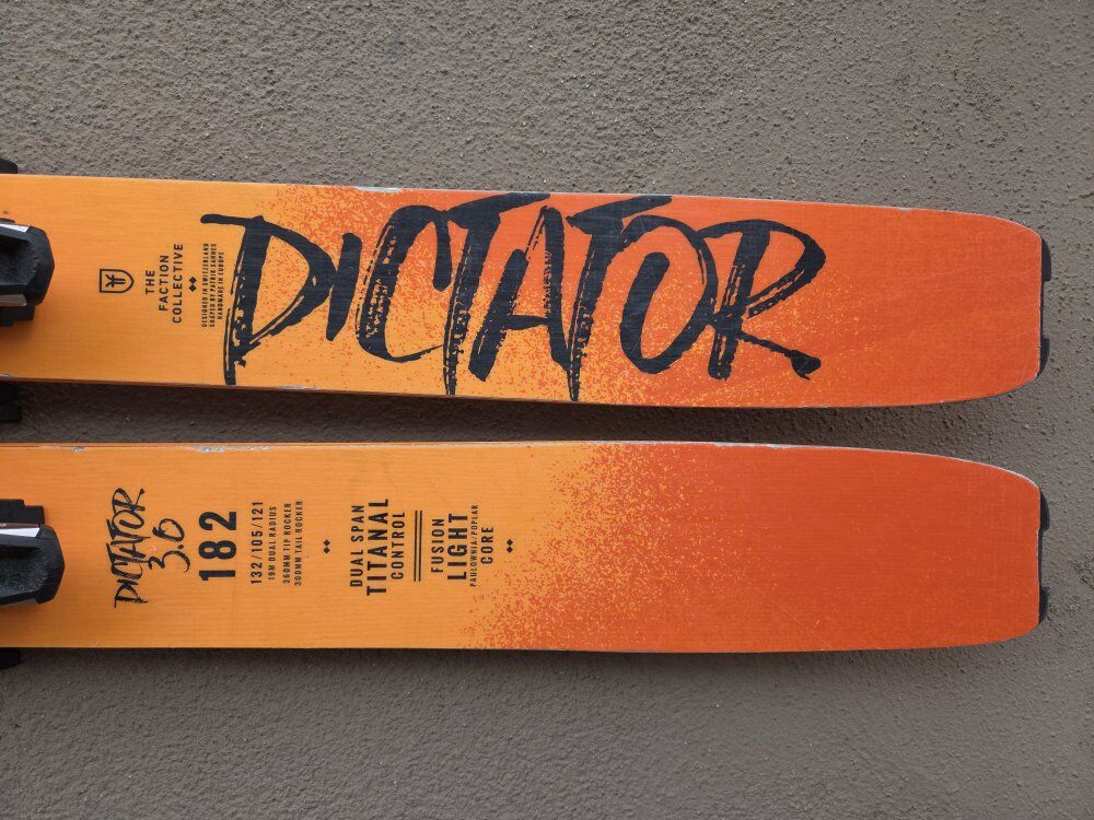 VenmoFaction Dictator 3.0 skis, 182cm length, 105 width. Orange. These are great, well loved skis, they have a couple core shots that have been filled as pictured. Still lots of life left!