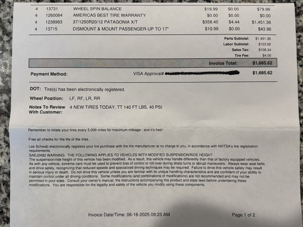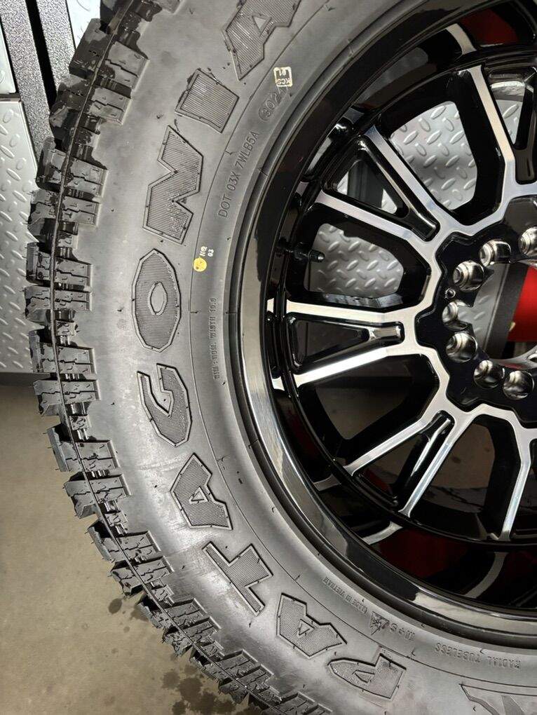 Moto Metal legacy wheels and Milestar Patagonia X/T tires. Like new wheel and tire package! Comes with TPMS sensors and black lug nuts for Ram tread pattern. Tires still have wear knobs, maybe 2500 miles total. Dual bolt pattern, 6X135/6X139.7. These wheels will fit GM/Ford/Toyota and many other 6 lug vehicles. Please call or text Rich for additional info or pics. I have the center caps as well which covers the lug nuts and center area.