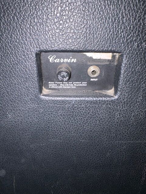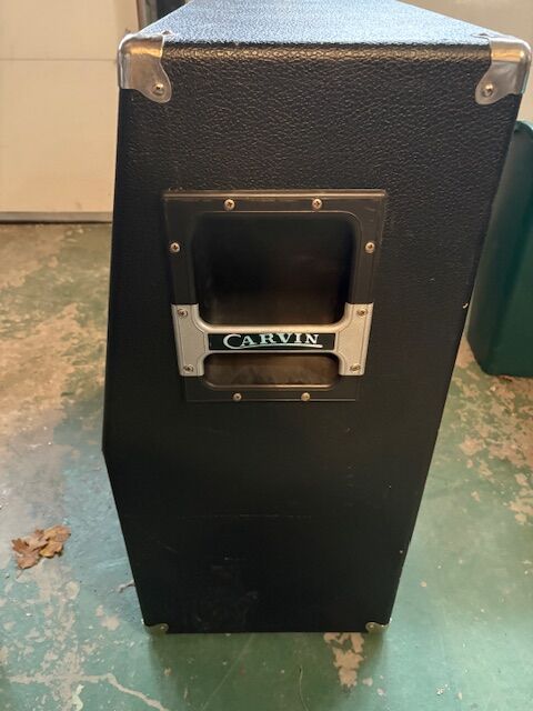 Vintage Carvin 4-12 angled cab w/cover - pretty good shape - solid wood. not particle board - nice loud round tone - stock Carvin speakers.