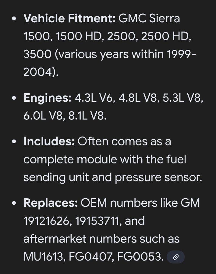 GooglePayFuel pump was sending unit fuel pressure sensor compatible with g m c chevy, 1999-2004