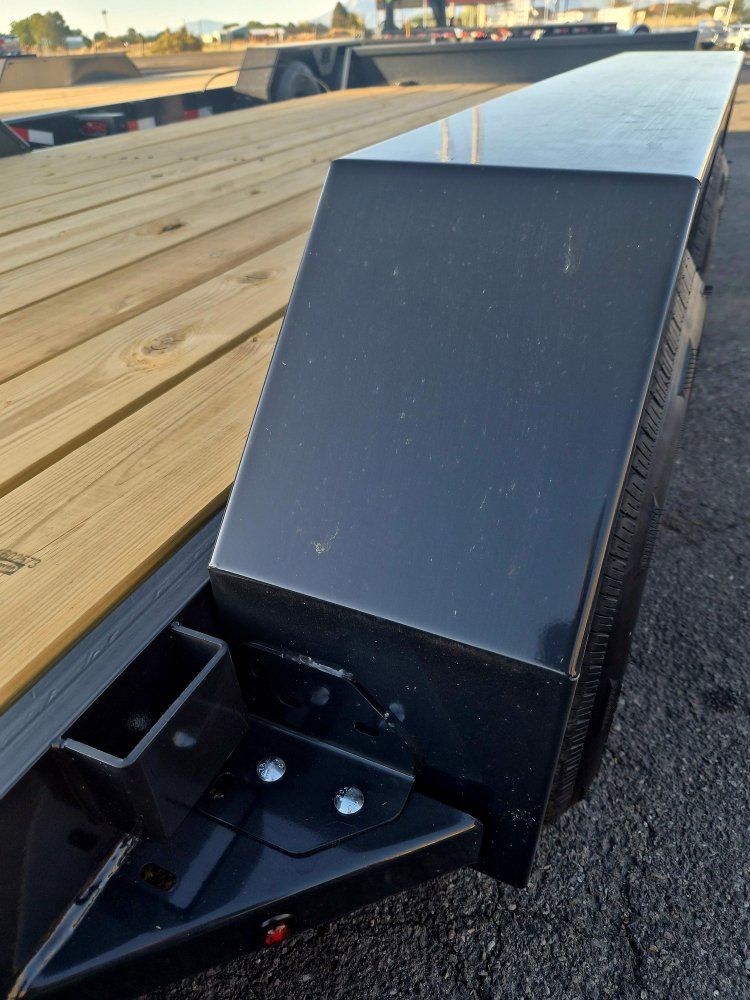 CATEGORY SPECIFICATIONS Axles (10K) 2 - 6000# Premium, Cambered Axles with Quick-Lubricating Hubs Brakes Forward Self-Adjusting Electric Brakes on Both Axles Suspension Multi-Leaf Slipper Spring w/ Equalizer Tongue 5" Channel Wrap Tongue Coupler (14K) 2-5/16" Adjustable Coupler Safety Chains 3/8" Grade 70 w/ Safety Latch Hook (2 ea) Jack 7,000# Top Wind,Drop Leg, Set-Back Jack Frame 5" Factory Channel Cross-Members 3" Factory Channel Front Stop Rail 3/16" Fabricated Front Stop Rail Floor 2" Treated Pine Fenders Removable Double Broke Fenders Stake Pockets Stake Pockets Along Both Sides Trailer Plug 7-Way RV Lights Recessed, Grommet-Mounted L.E.D. Lighting Wiring Sealed Modular Wiring Harness Tires ST225/80 R-16 Load Range D Radial Tires Bolt Pattern 6-Bolt Paint Type Sherwin Williams Shawn 801-309-8290