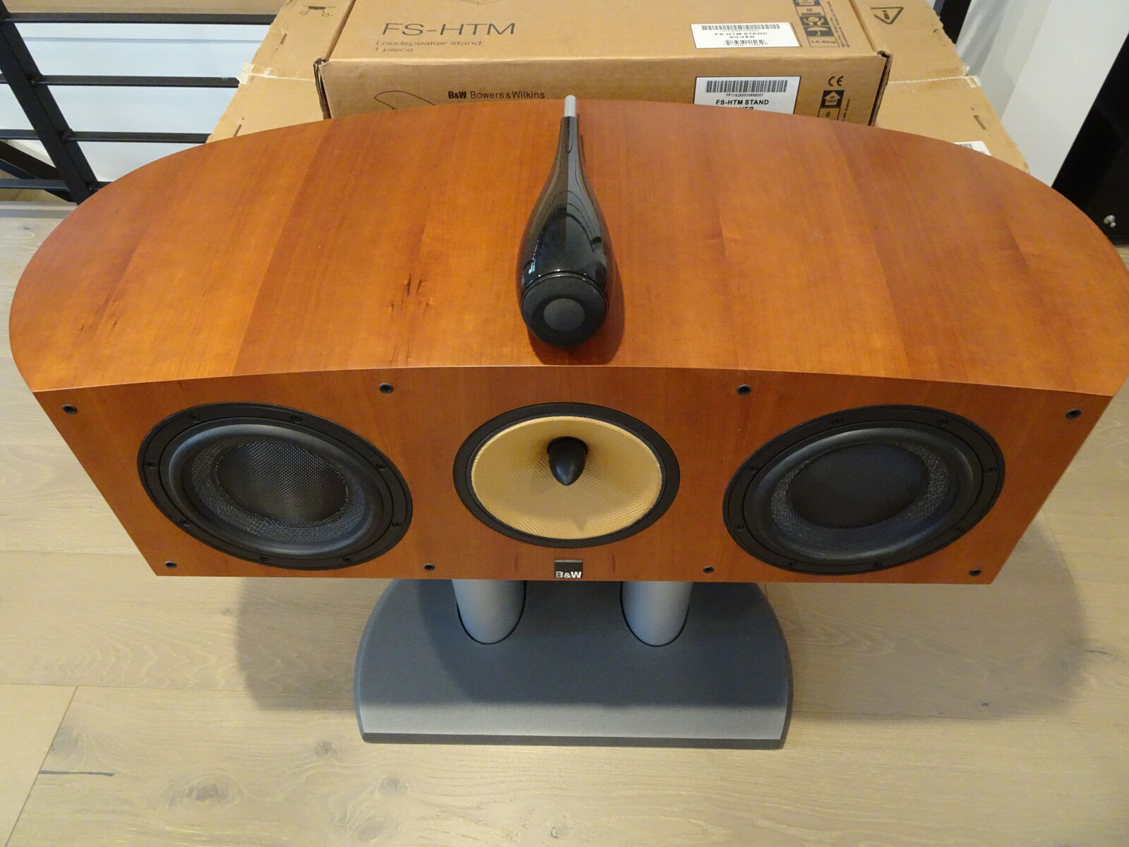 VenmoB&W Bowers and Wilkins HTM2D center channel speaker in cherrywood finish. Also including a B&W Bowers and Wilkins FS-HTM Stand in silver.