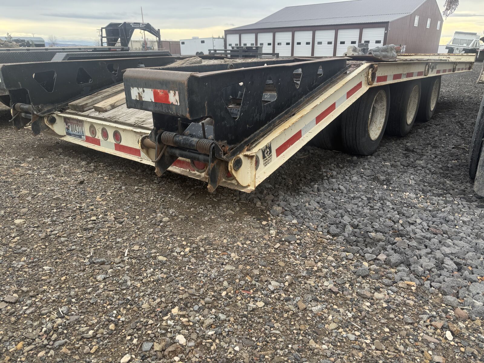 Trail king 50k, triple axle pintle hitch trailer, tires are 80+,air brake, chain and binder box, fold down ramps, asking 13,000
