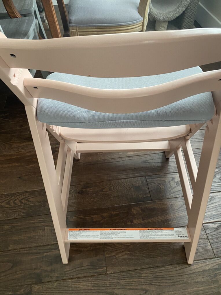 VenmoHauck alpha+ high chair in rose color with padded grey cushions. Made from European beechwood. My niece has only used it a few times. Nice looking in great condition. I added photos of what it goes for on Amazon. Ours is without the plastic click tray top.