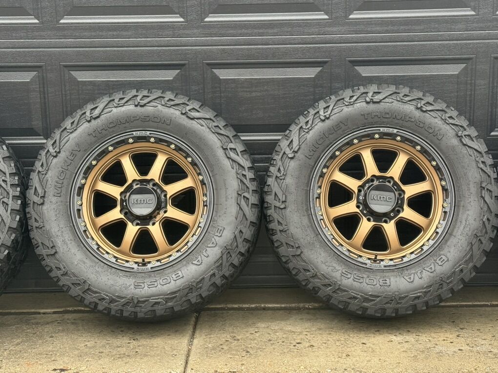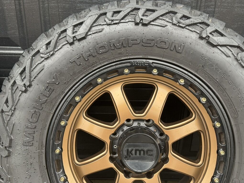 PRICE JUST DROPPED!! 20” KMC Bronze Wheels with 37” X 12.50R20 LT Tires. This is a wheel and tire package. There is 7/32” left on the tires. If it was wanted, I have Readylift Falcon Shocks and Coils springs to accompany. This will make most Diesel trucks look super sick and I will provide pictures of my truck that they came off of. It is a 2023 Ford Super Duty that was built by Dirt Tires and Donuts. The reason I am selling this set up is that we did a 2.0 version on the truck and changed up the suspension and tires on the new build. I am asking $2,000.00, please text Jason 435-659-1981. Please don’t waste my time with crazy low ball offers, will work with you, just not going to give it away. Thank you.
