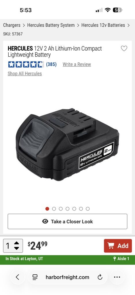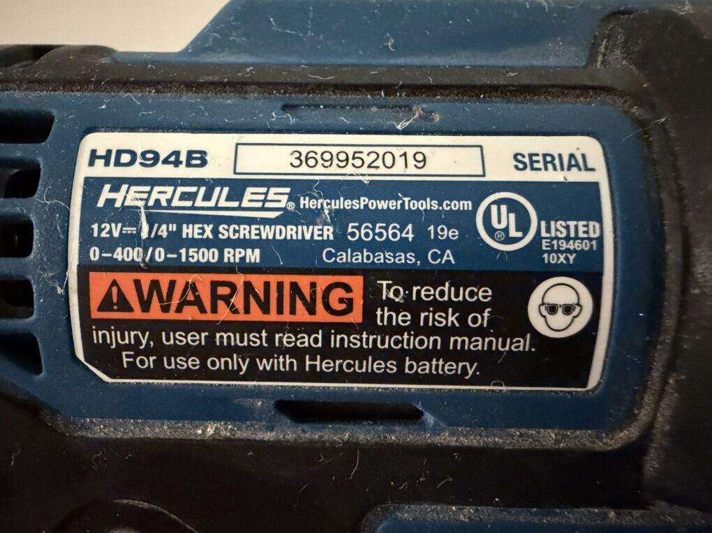 1x 12/20 V Charger ^— This is NOT working. Need to fix or replace, approx $45 at Harbor Freight.