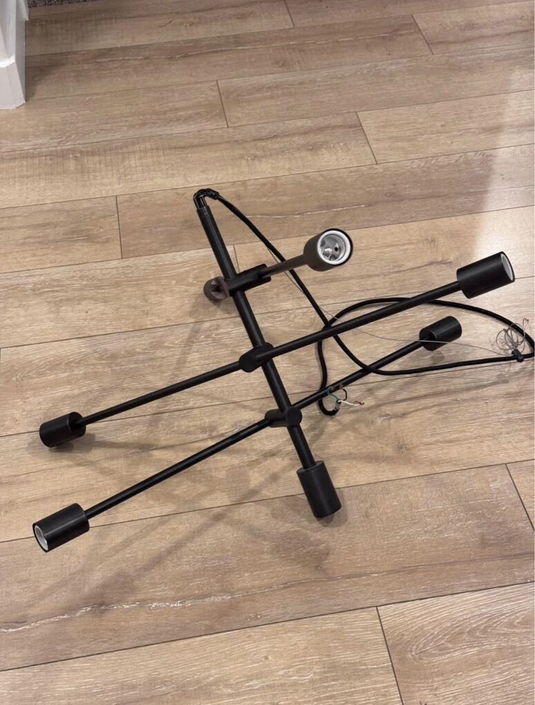 ApplePay6 bulb modern light fixture. Kept in perfect condition, matte black. Loved it but switched up styles for our dining room. Happy to include lightbulbs.