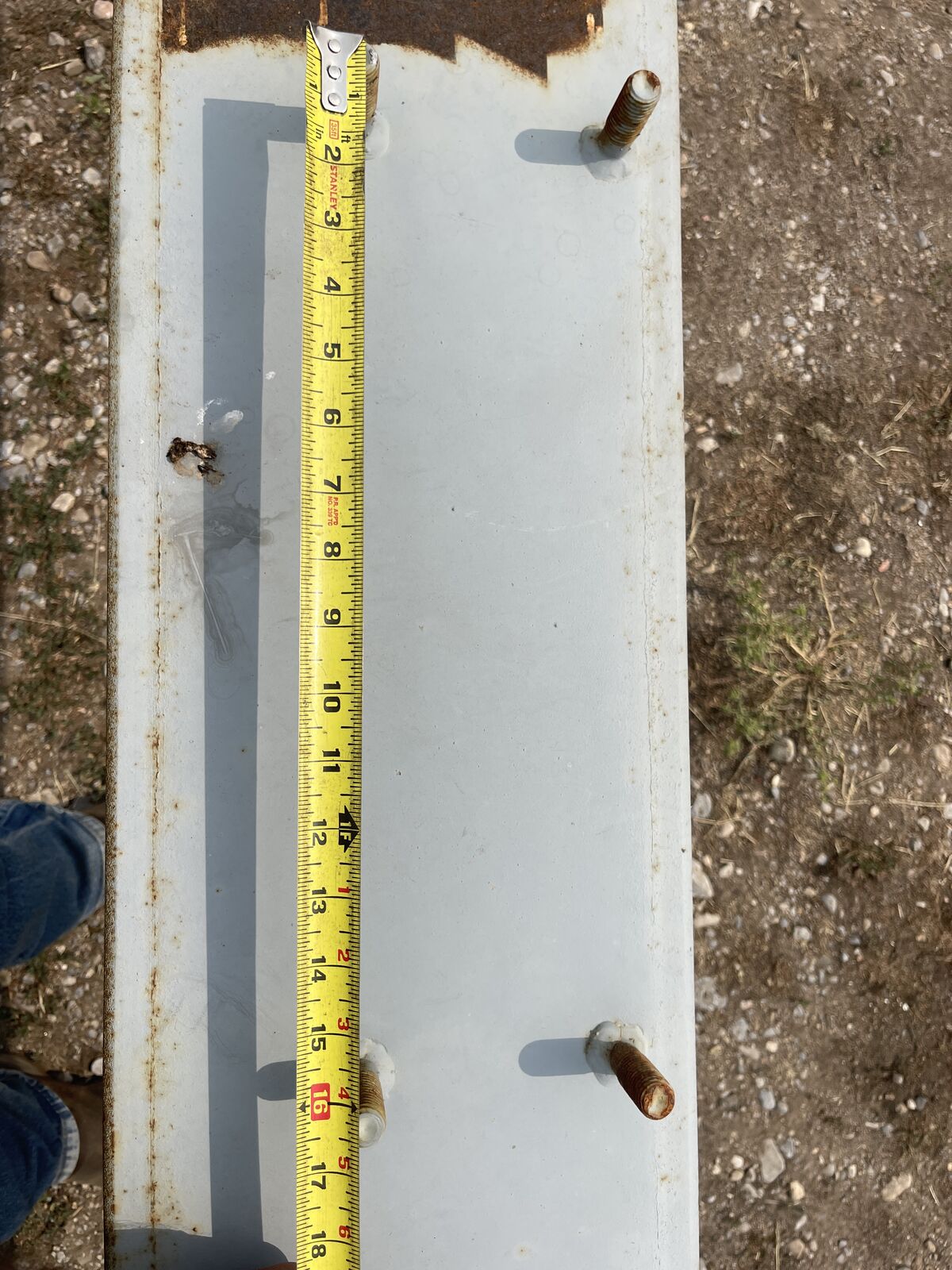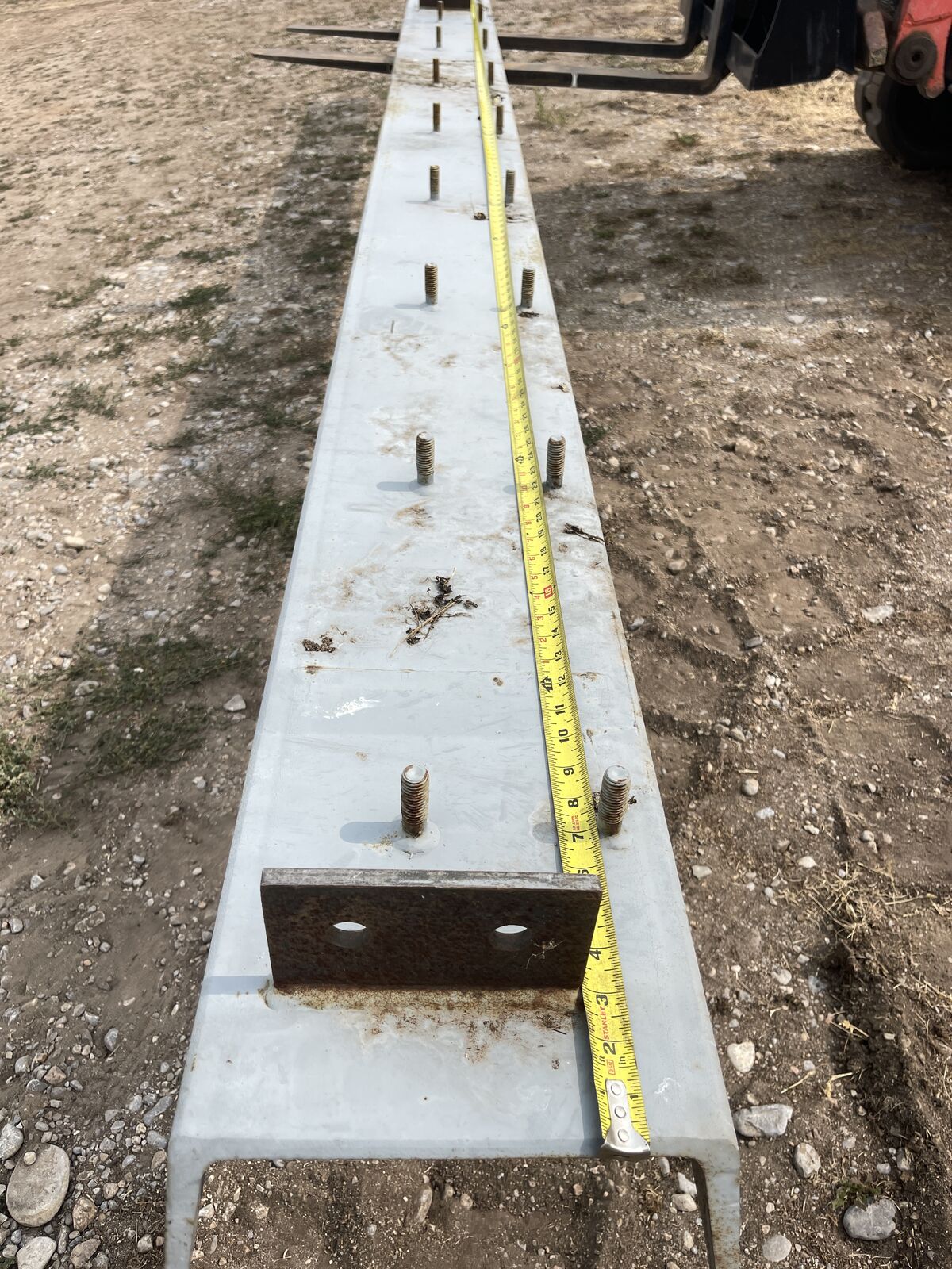 VenmoC Channel 19 feet 8 inches long 10 inch Height x 3 inch wide and 1/4 inch thick. bolts are 16” O/C.