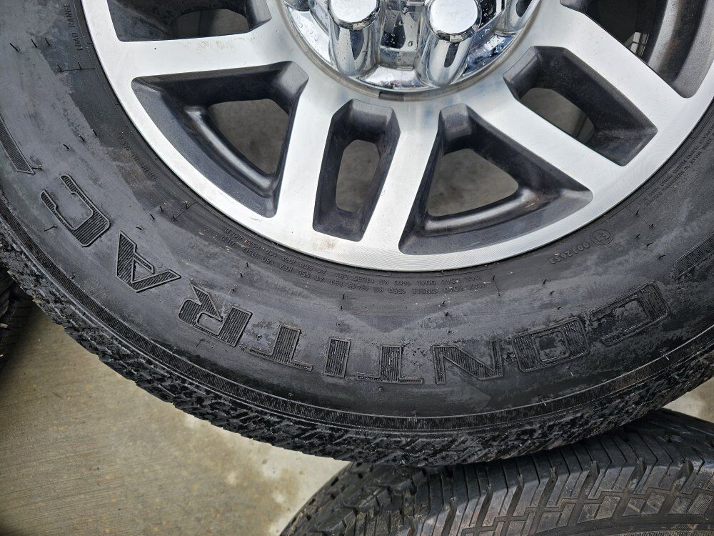 ApplePayWheels and 275/65R18 AT tires have less than 5k miles. Continental ContiTrac Tires have ford TPS sensors installed. Wheel in new condition removed for new wheels