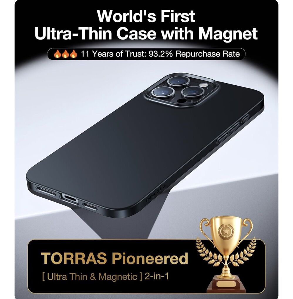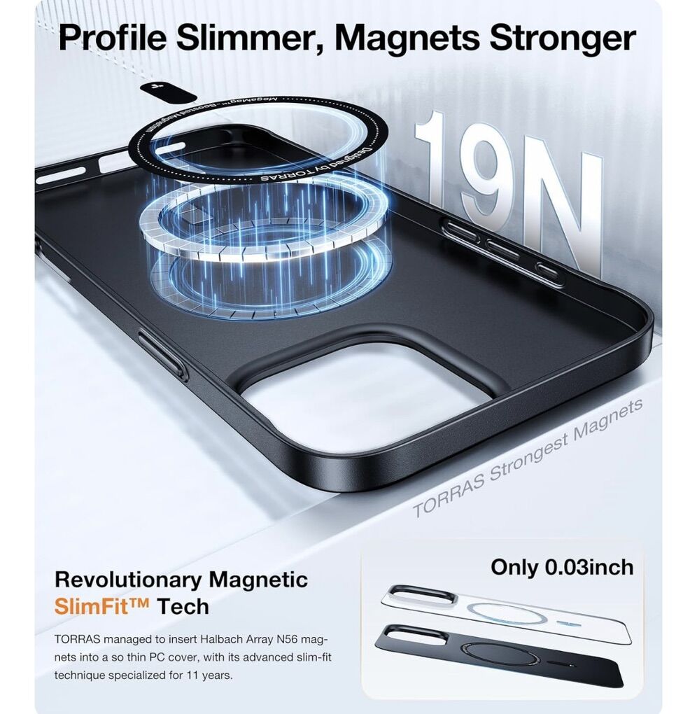 TORRAS Magnetic Slim Fit for iPhone 16 Pro Case, 6.3 inch, Ultra-Thin Case Compatible with MagSafe, Lightweight Matte Anti-Scratch Hard PC Cover Phone Case for iPhone 16 Pro OriginFit, Black 1-Black Titanium iPhone 16 Pro