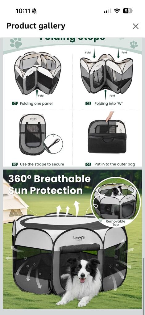 VenmoPop up Portable Includes carrying case Only used once for my kitten 25”wide x 17”tall