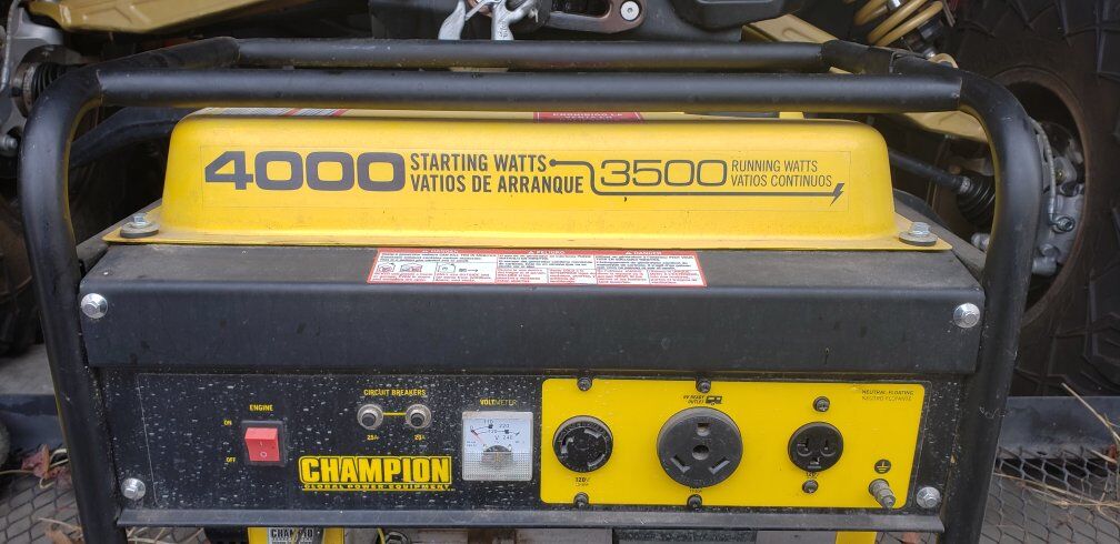 VenmoChampion 4000 generator. Runs great and has zero issues always been reliable and well taken care of. Only selling because I needed to upgrade to a pure sine wave generator. Includes: Champion 4000 generator Wheel kit & folding handle Hitch-mounted carrier Generator cover Details: Gas-powered Easy to move with wheels and handle Plenty of power for camping, trailer use, backup power, tools, etc. Condition: Fully functional, no problems. Starts and runs as it should. Normal cosmetic wear from use only