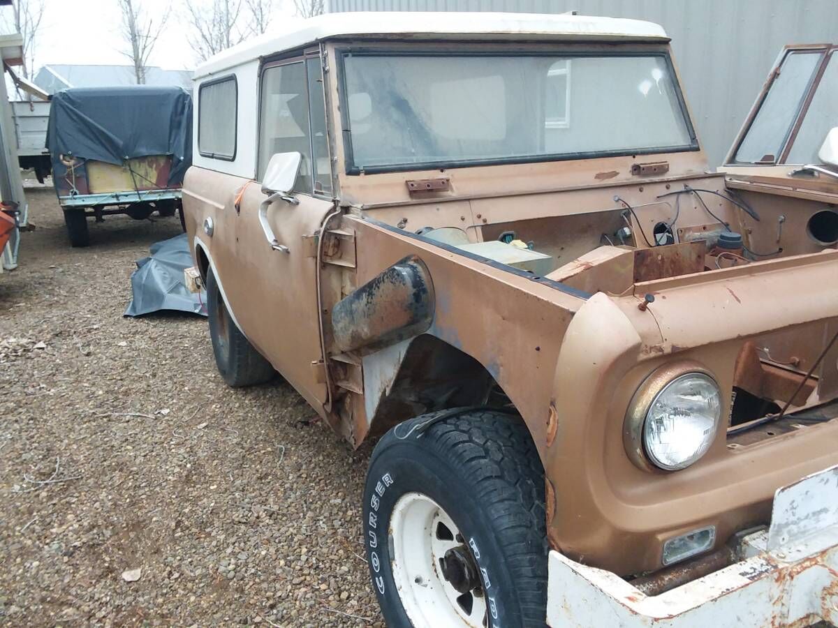 4 cyl Scout 800. Rusty in the floors and forward of rear wheels next to fuel tanks. No eng or transmission. No title. Not parting out.
